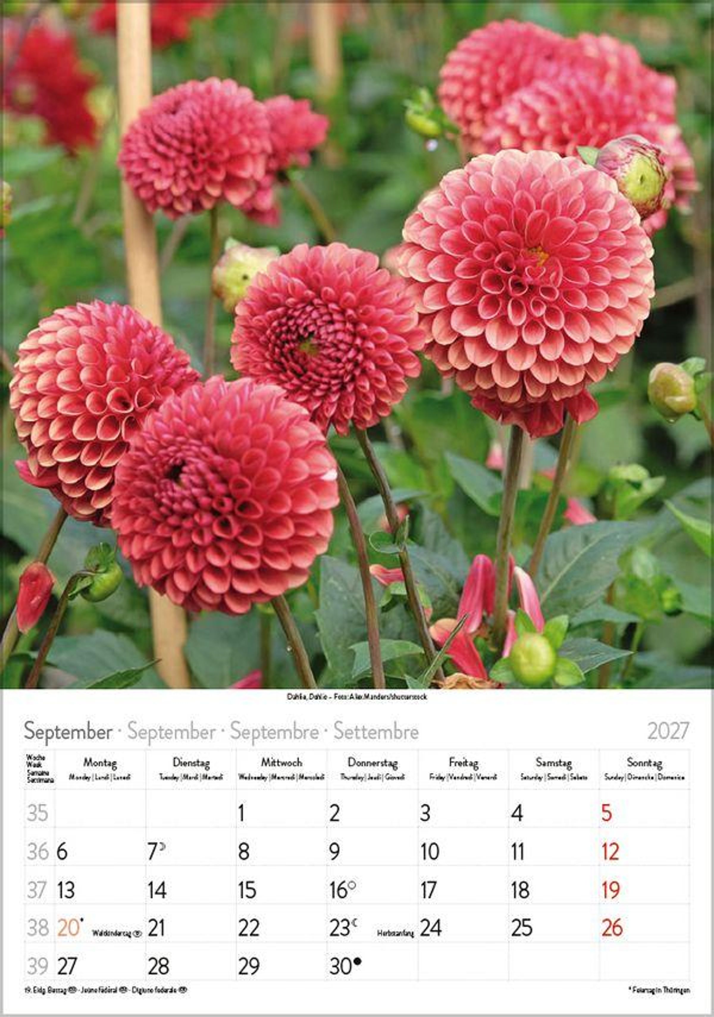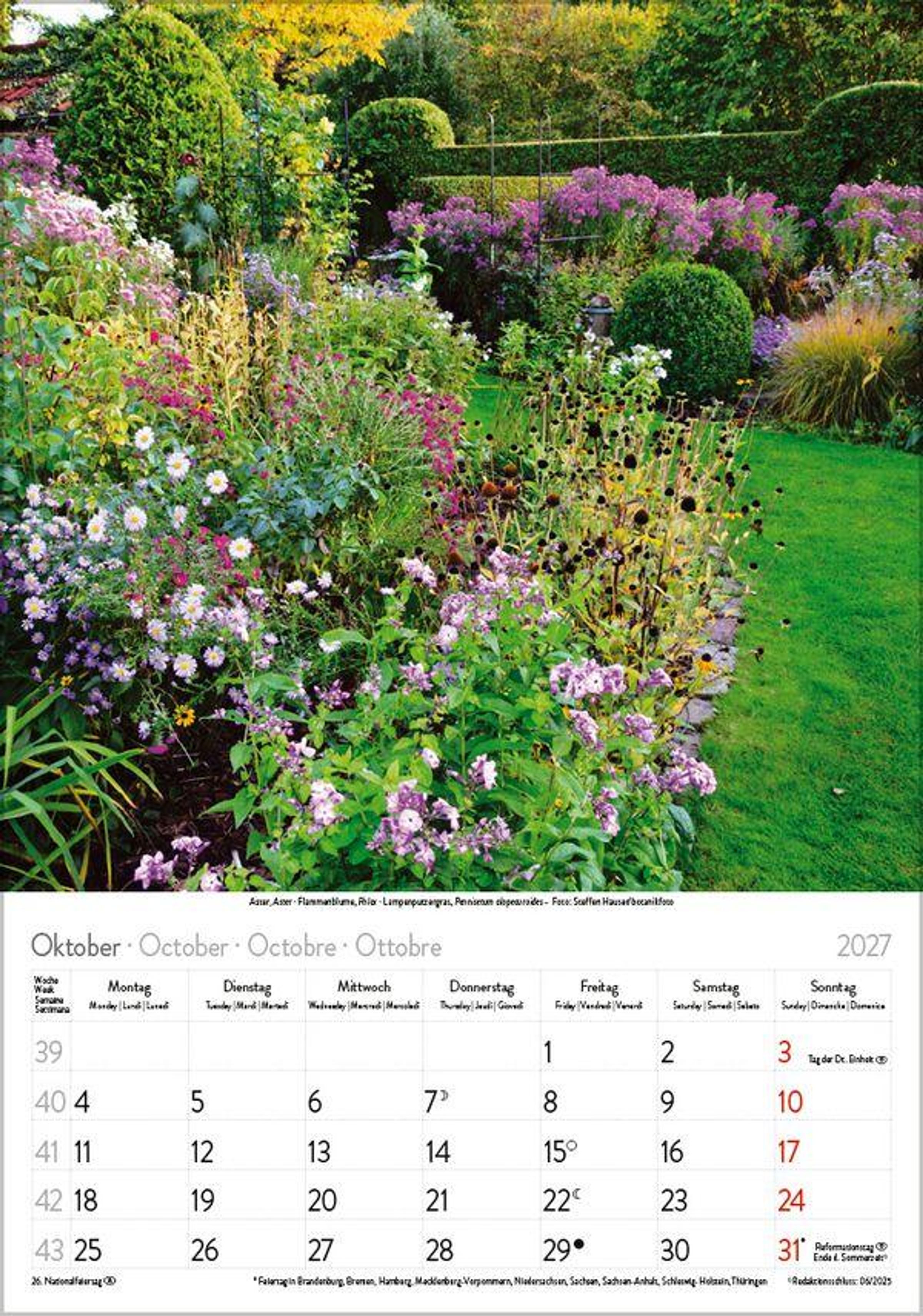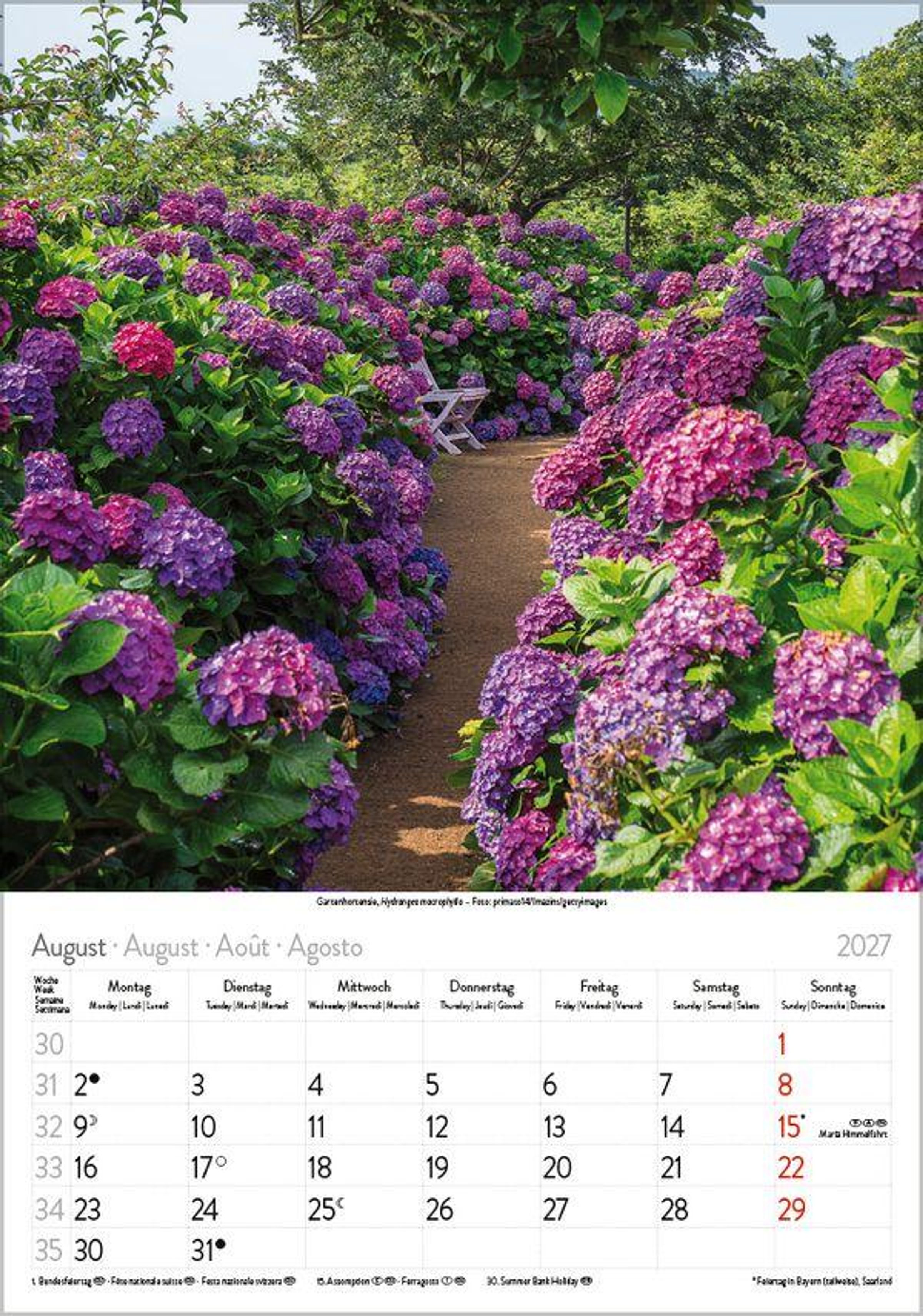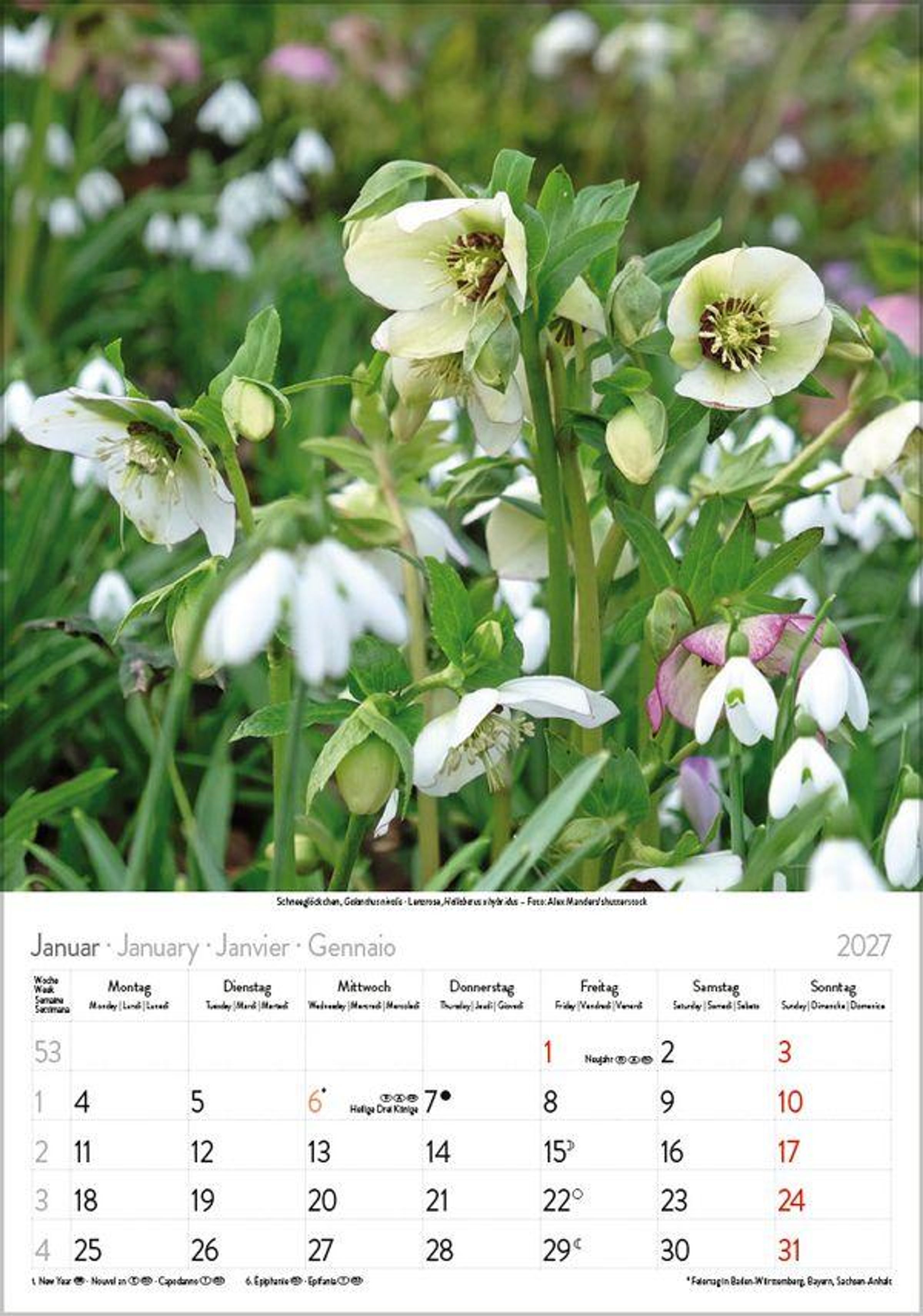 • Wandkalender mit Fotos von wunderschönen Blumenparadiesen. Format 23,5 x 33,5 cm.