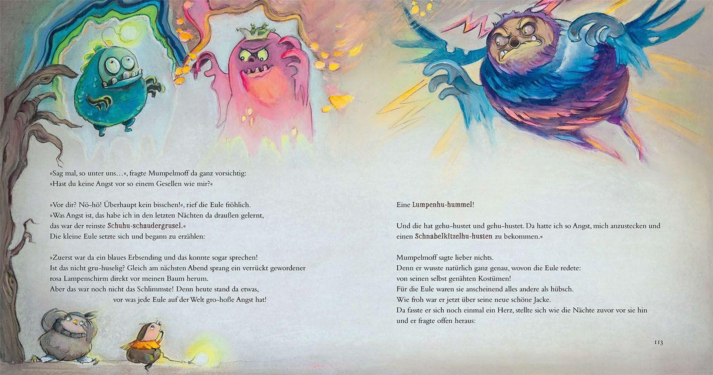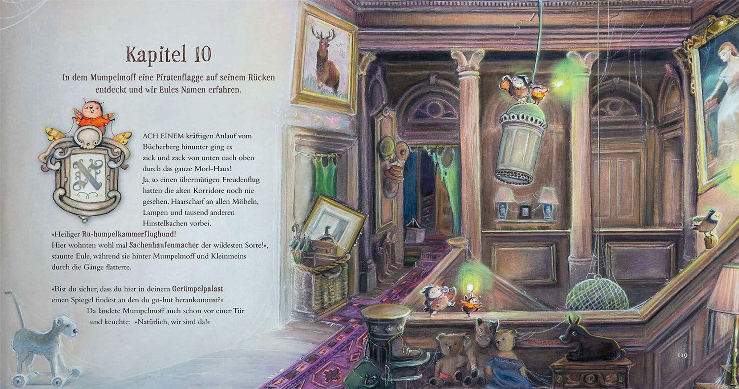 Mumpelmoff lebt einsam im Morl-Haus und sehnt sich nach echter Freundschaft. Als er die Eulenprinzessin trifft, glaubt er, sie nur durch immer neue, ausgefallene Kostüme beeindrucken zu können. Doch jedes Mal flieht sie vor ihm. Erst als ein Sturm seinen stillen Begleiter Luftballon Kleinmeins entführt, begibt sich Mumpelmoff auf eine abenteuerliche Reise. Mit der Hilfe einer Zauberfee entdeckt er, dass er nicht durch Verkleidungen, sondern durch das, was ihn einzigartig macht, wahrhaftig besonders ist. Dieses liebevolle Abenteuer über Mut, Selbstfindung und echte Freundschaft wird von zauberhaften, vierfarbigen Illustrationen begleitet, die eine nostalgische Welt lebendig werden lassen - kunstvoll und mit viel Liebe zum Detail von Künstlerin Bo Starker gestaltet.
