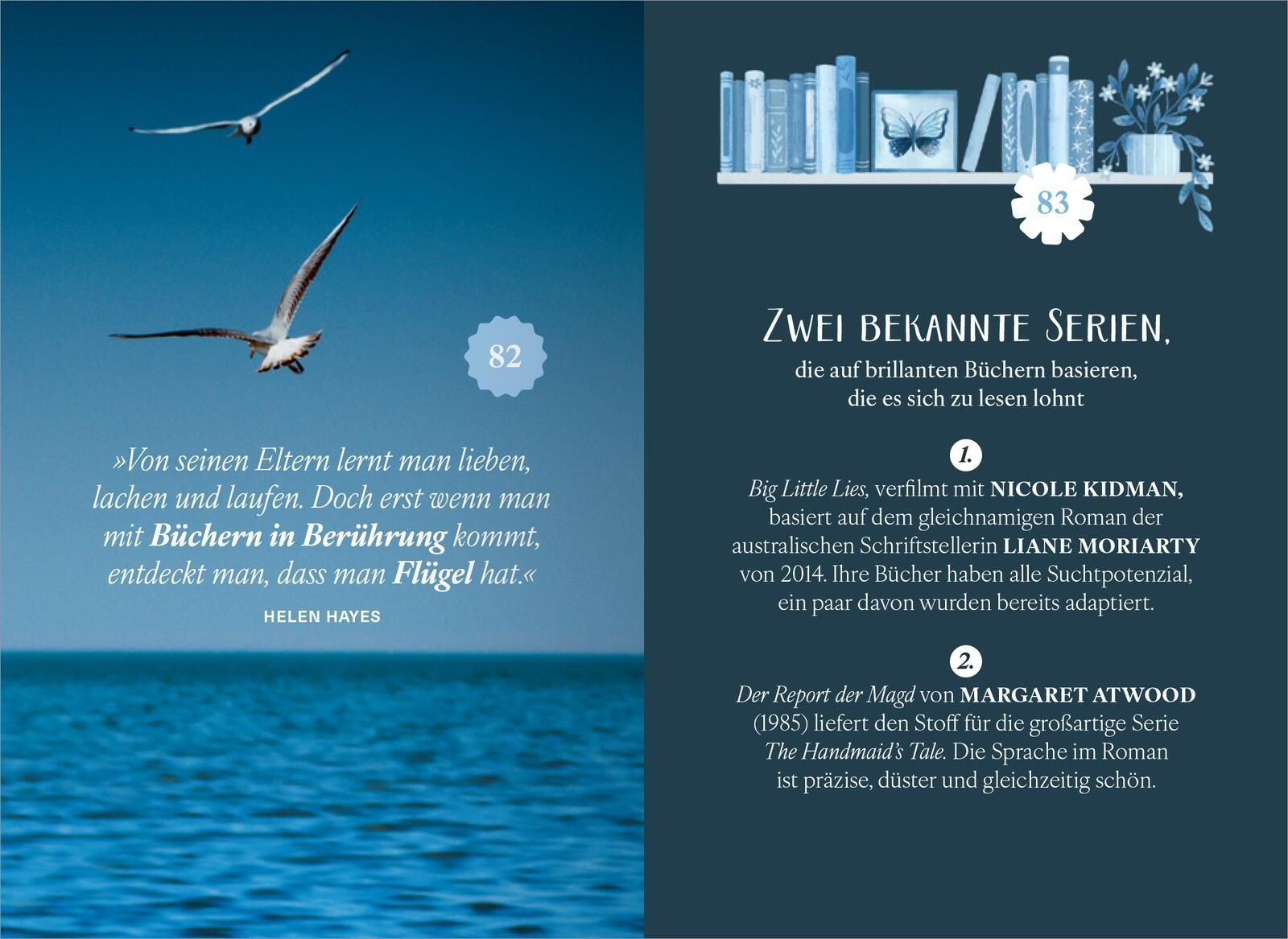 Heinrich Heine sagt: "Von allen Welten, die der Mensch erschaffen hat, ist die der Bücher die Gewaltigste." Denn Lesen ermöglicht es uns, für die Dauer eines Buches die Leben anderer zu leben, unbekannte Welten zu entdecken und tief in faszinierende Geschichten einzutauchen. Dieses dekorative Buch enthält 99 Lesemomente mit überraschenden Fakten, inspirierenden Zitaten und spannenden Einblicken in die Welt der Bücher. Von zeitlosen Klassikern bis hin zu kuriosen Buchtraditionen - entdecke, was Literatur so besonders macht, und lass dich von den bibliophilen Impulsen zum Nachdenken und Träumen anregen. Viel Spaß auf deiner kleinen Reise durch die große Welt der Literatur.