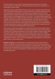 This book provides an accessible but intellectually rigorous introduction to the global social movement for ¿climate justice¿ and addresses the socially uneven consequences of anthropogenic climate change. Deploying relational understandings of nature-society, space, and power, Brandon Derman shows that climate change has been co-produced with social inequality. Mismatching levels of responsibility and vulnerability, and institutions that emerged in tandem with those disproportionalities compose the terrain on which NGOs and social movements now contest climate injustice in a wide-ranging ¿politics of connection.¿ Case-based chapters explore the defining commitments of affected and allied communities, and how they have shaped specific struggles mobilizing human rights, international treaties, transnational activist forums, national and local constituencies, and broad-based demonstrations. Derman synthesizes these cases and similar efforts across the globe to identify and explore crosscutting themes in climate justice politics as well as the opportunities and dilemmas facing advocates and activists, and those who would ally with them going forward.