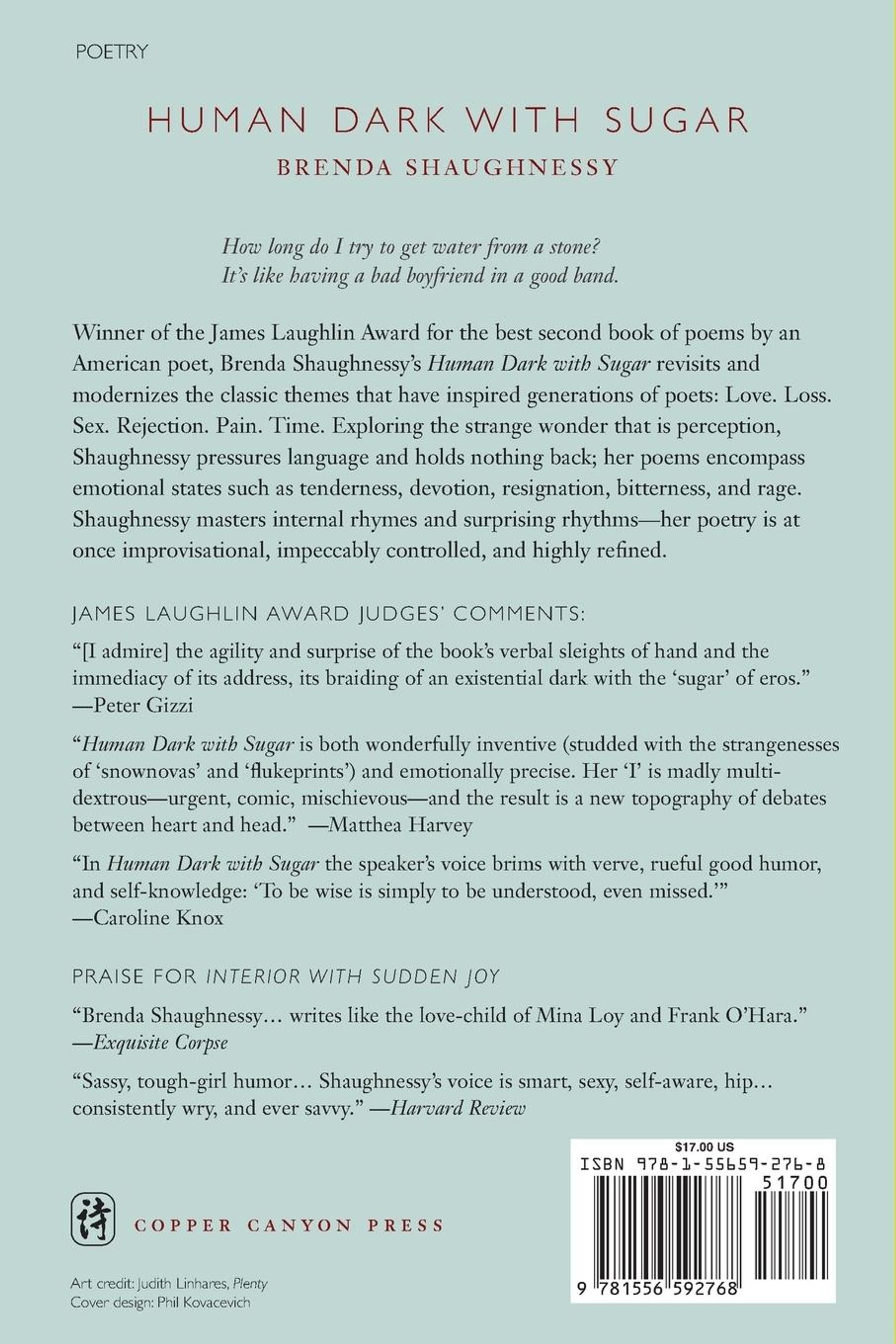 Winner of the 2007 James Laughlin Award as the best second book published in the United States.