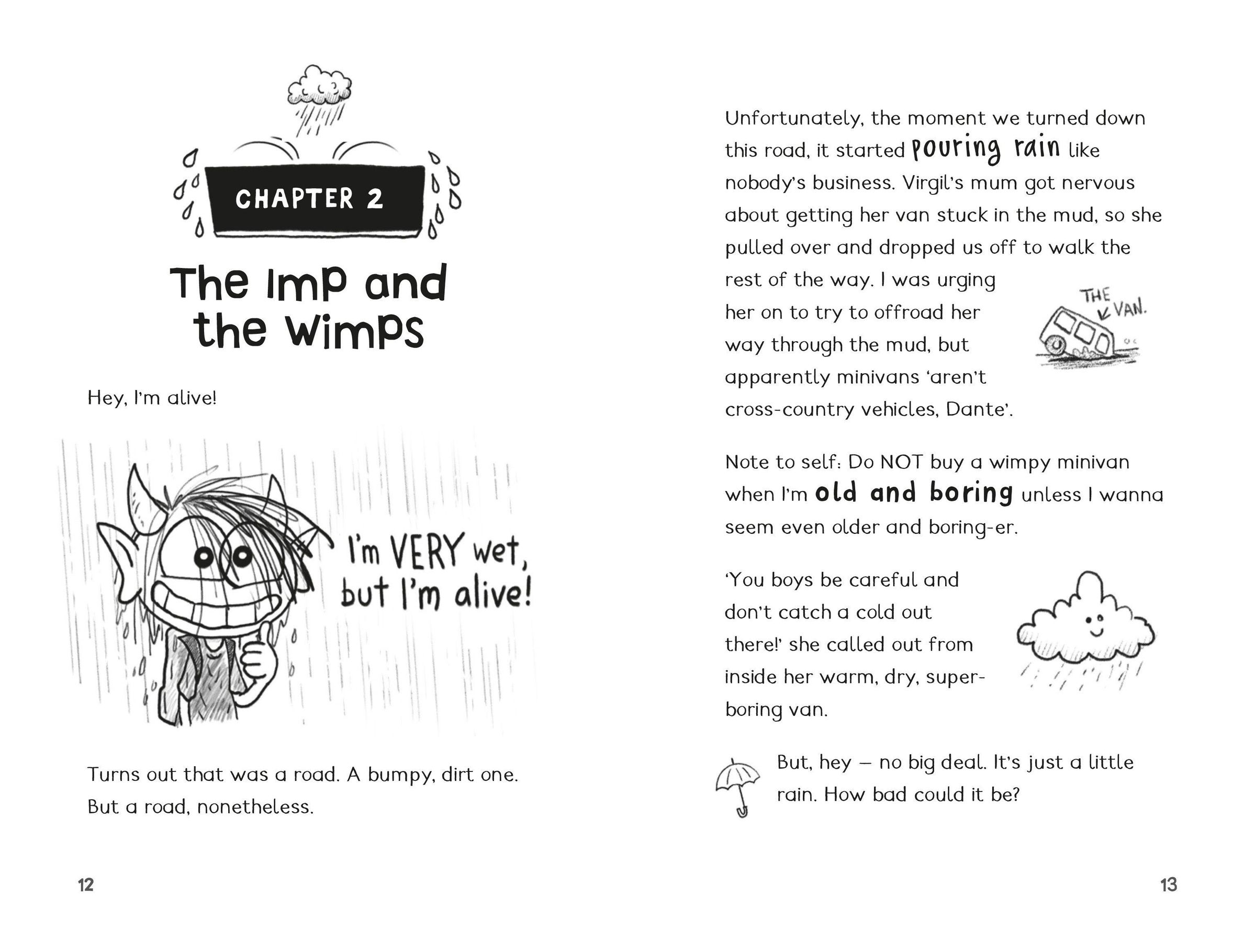 A LOT! Endless rain, sharing a cabin with his nemesis and being hit in the butt by a stray arrow are only the beginning of Dante's woes. With an outrageously annoying heartthrob camp counsellor and whisperings of a monster lurking in the woods, Dante's problems are about to get MUCH worse!