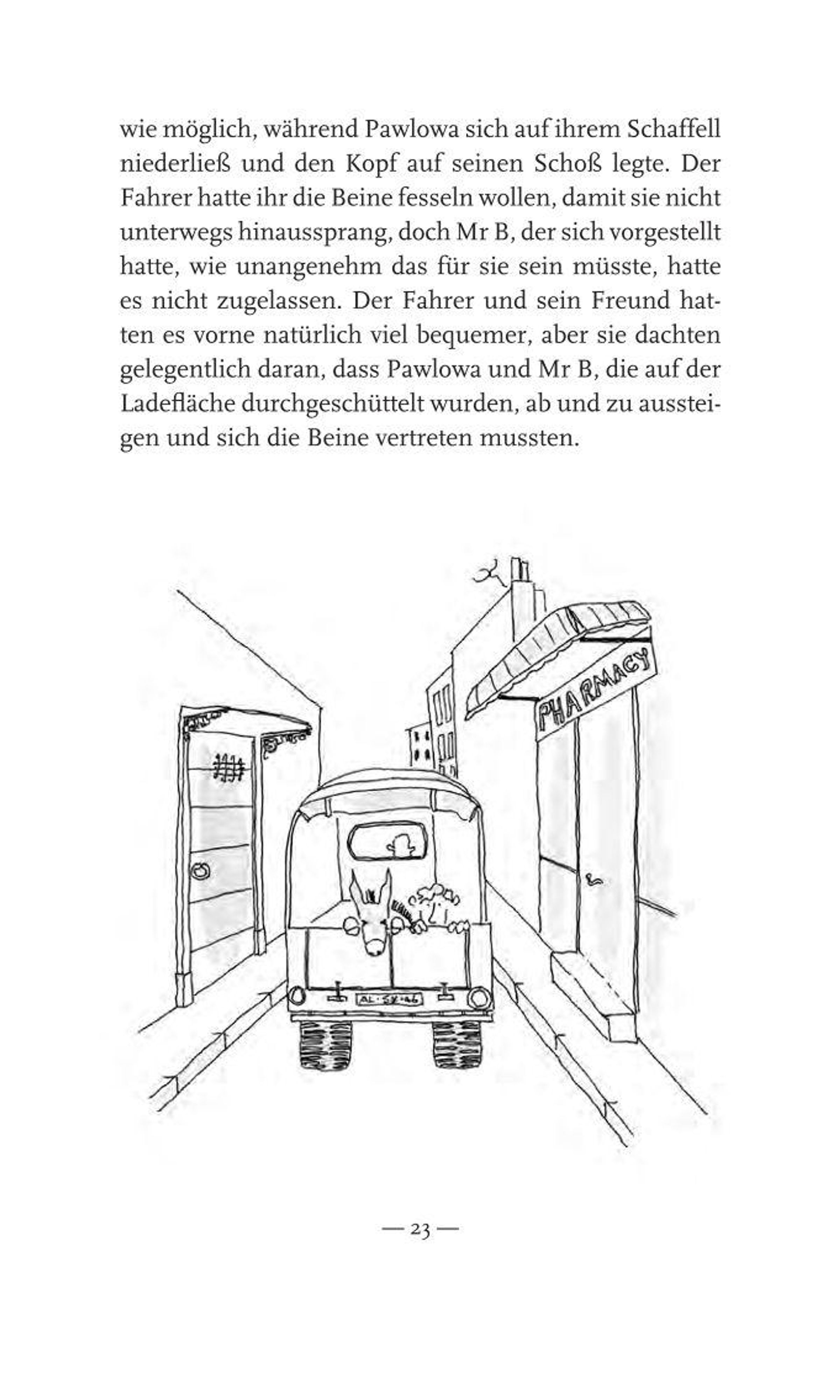 Auf einer Reise in Pakistan sieht Mr B, ein britischer Gentleman, eine kleine Eselin: Ihr Rücken ist vollbepackt, ihre dünnen Beine zittern unter der schweren Last. Kurzerhand springt Mr B aus dem Wagen, fest entschlossen, sich um das Tier zu kümmern und es mit nach Hause zu nehmen. Das einzige Problem: Sein Zuhause liegt in London und ein Esel kann nicht im Flugzeug reisen. Also begeben sich Mr B und Pawlowa, wie er die Eselin von nun an nennt, auf eine lange Reise durch den Nahen Osten bis nach Europa - zu Fuß ...