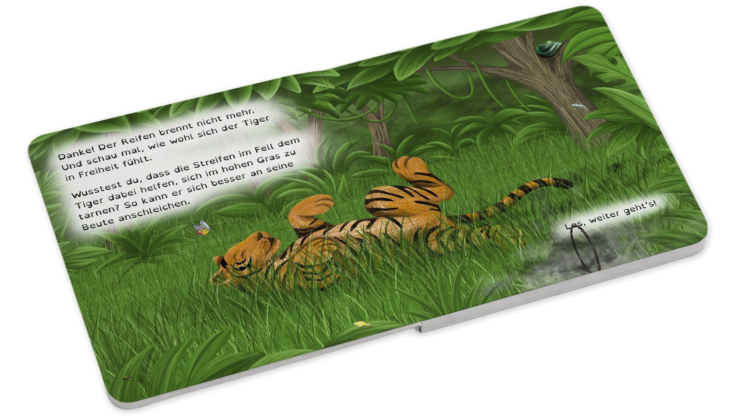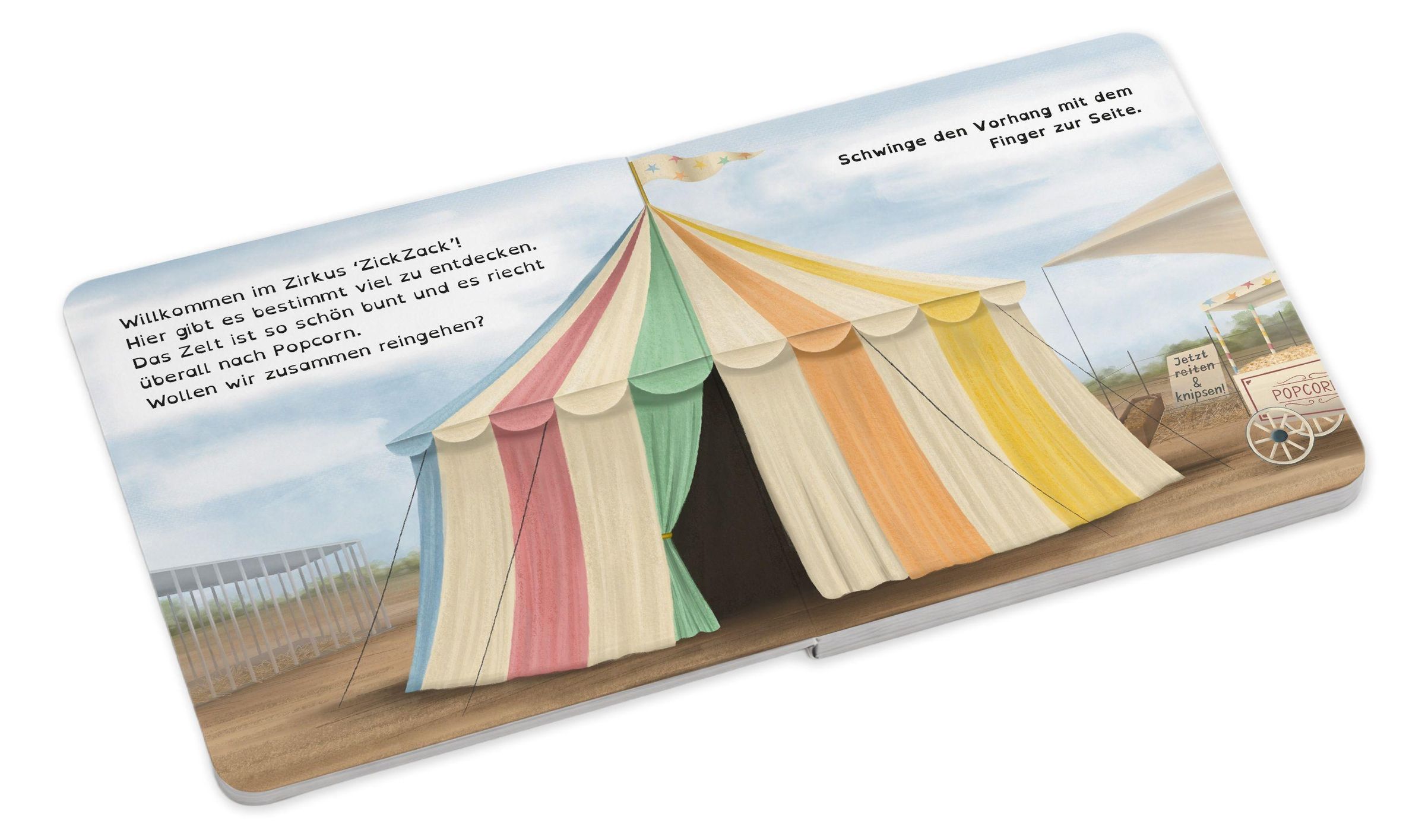 In diesem Mitmachbuch retten wir die Zirkustiere. Durch Tippen, Pusten oder Klatschen helfen die Kinder den Tieren auf ihrem Weg in die Freiheit