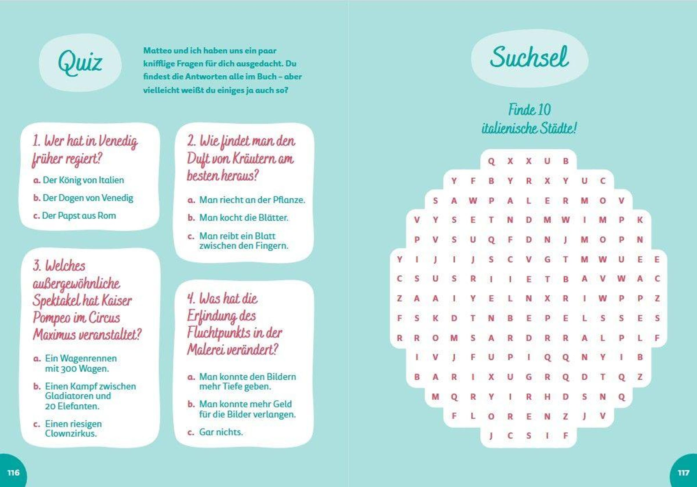 Mit spannenden Rätseln, lustigen Anekdoten und vielen Mitmach-Ideen wird dieser kindgerechte Reiseführer zum perfekten Begleiter - vor, während und nach deinem Italien-Abenteuer!