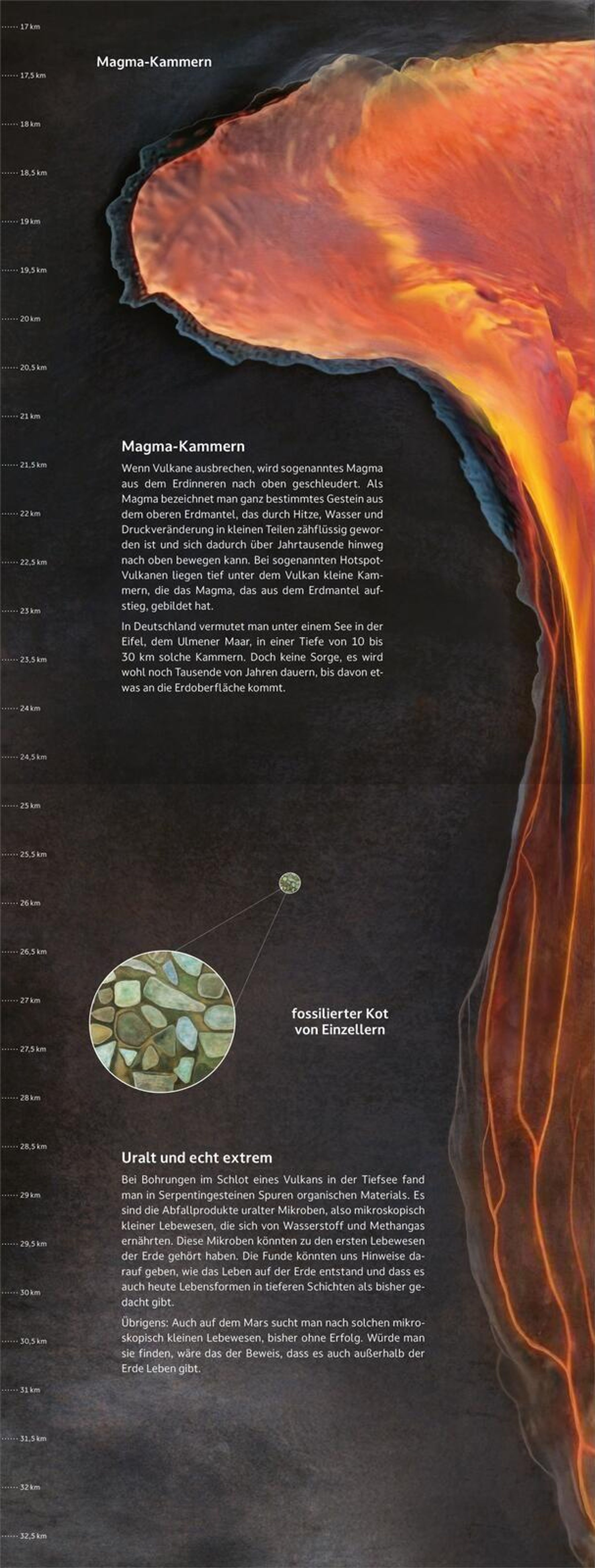 Aufklappen, staunen und in die Tiefe tauchen: Mit diesem einzigartigen Buch begibst du dich auf eine faszinierende Expedition durch die Erdschichten: von der Oberfläche über viele verschiedene Gesteinsschichten bis hin zum glühend heißen Erdkern.
