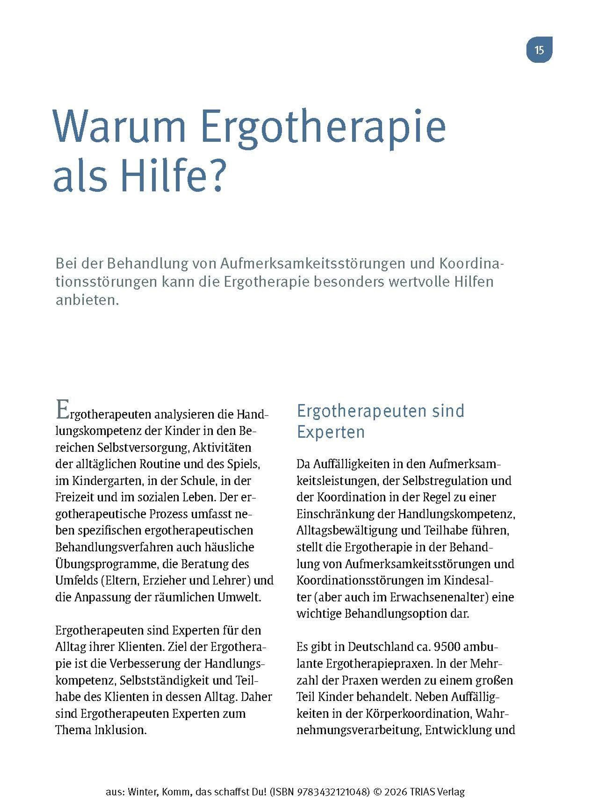 Britta Winter ist Ergotherapeutin in eigener Praxis und Mitglied im ADHS-Qualitätszirkel der Medizinischen Hochschule Hannover.Anmerkungen: