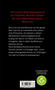 In diesem persönlichen Buch finden sich die Geheimnisse und Lebensweisheiten von Bruce Lee, die zu seinem unglaublichem Erfolg geführt haben - als Schauspieler, Kampfkünstler und als Inspiration für die Welt. Dieser Erfolg basiert auf einer glasklaren geistigen Ausrichtung, die Bruce Lee ebenso trainierte wie seinen Körper. Bruce Lee verkörperte daoistische und buddhistische Prinzipien und setzte sie in seinen Kämpfen, aber auch in seinem alltäglichen Leben um. Sie ermöglichten ihm zu "wissen", was ein Gegner als nächstes tun würde, bevor dieser überhaupt damit begonnen hatte.