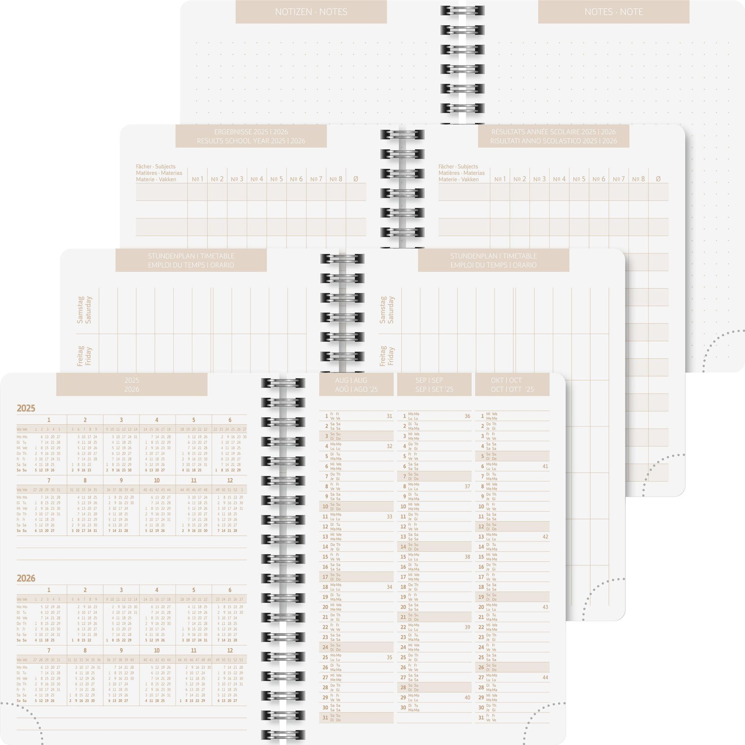 BRUNNEN Schülerkalender (2025/2026) "Bear", 2 Seiten = 1 Woche, A6, 208 Seiten, PP-Umschlag, mehrfarbig