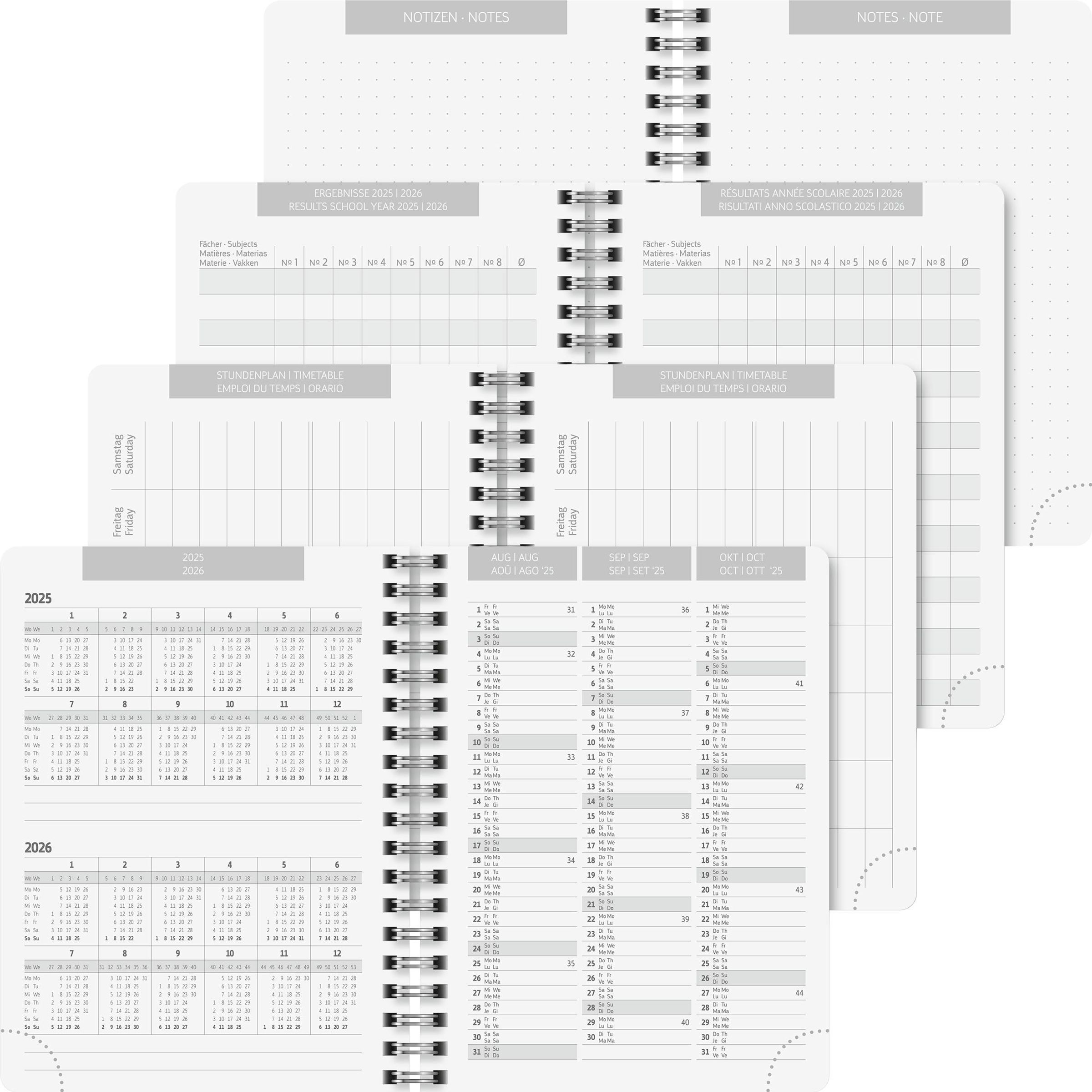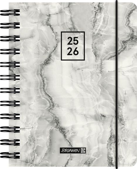 BRUNNEN Schülerkalender (2025/2026) "Grey Marble", 1 Seite = 1 Tag, A6, 352 Seiten, PP-Umschlag, grau, Kunststoff