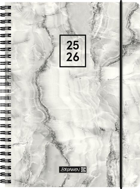 BRUNNEN Schülerkalender (2025/2026) "Grey Marble", 2 Seiten = 1 Woche, A5, 208 Seiten, PP-Umschlag, grau, Kunststoff