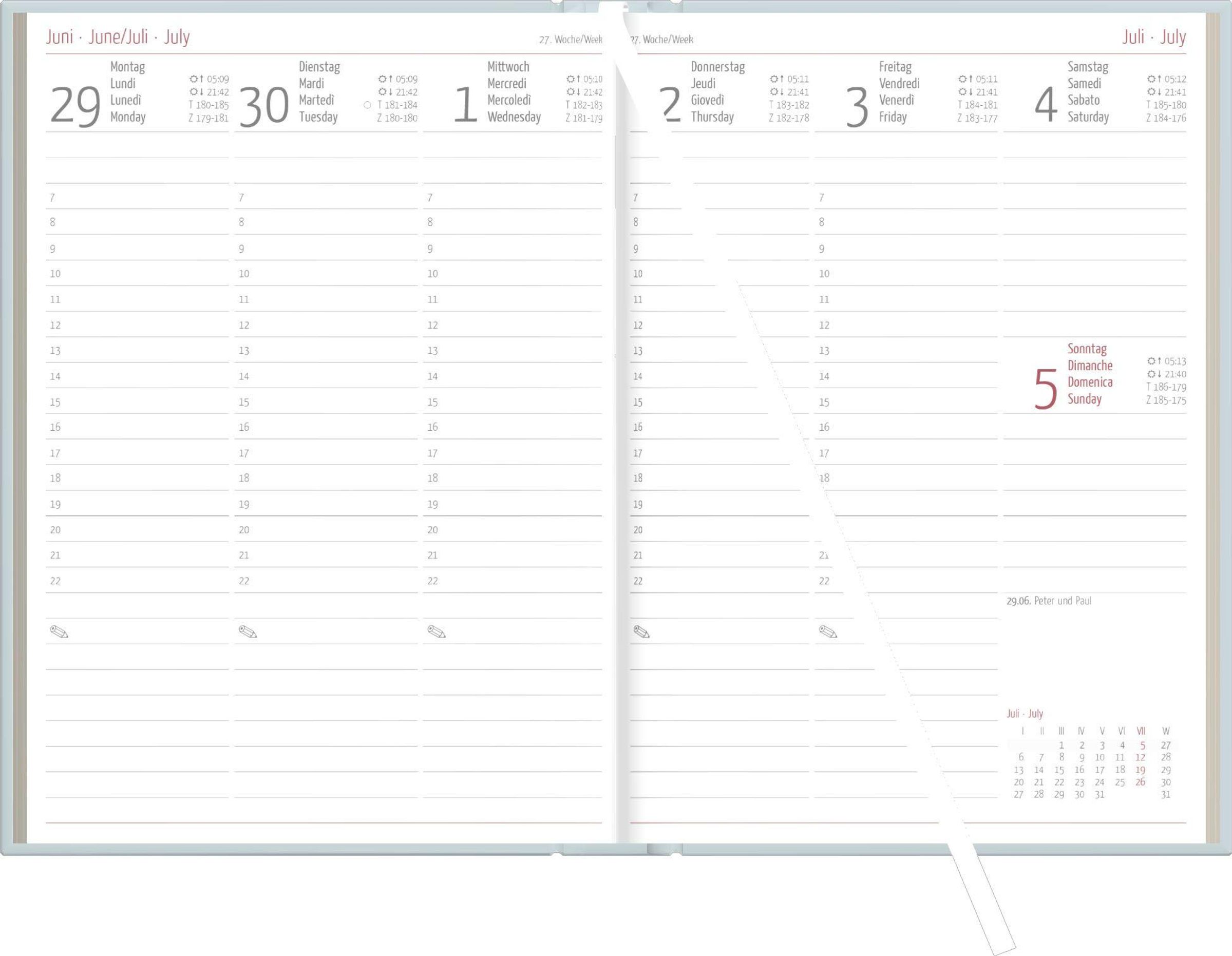 Praktische Details: Eckperforation zum schnellen Finden des aktuellen Tages, integriertes Lesezeichen