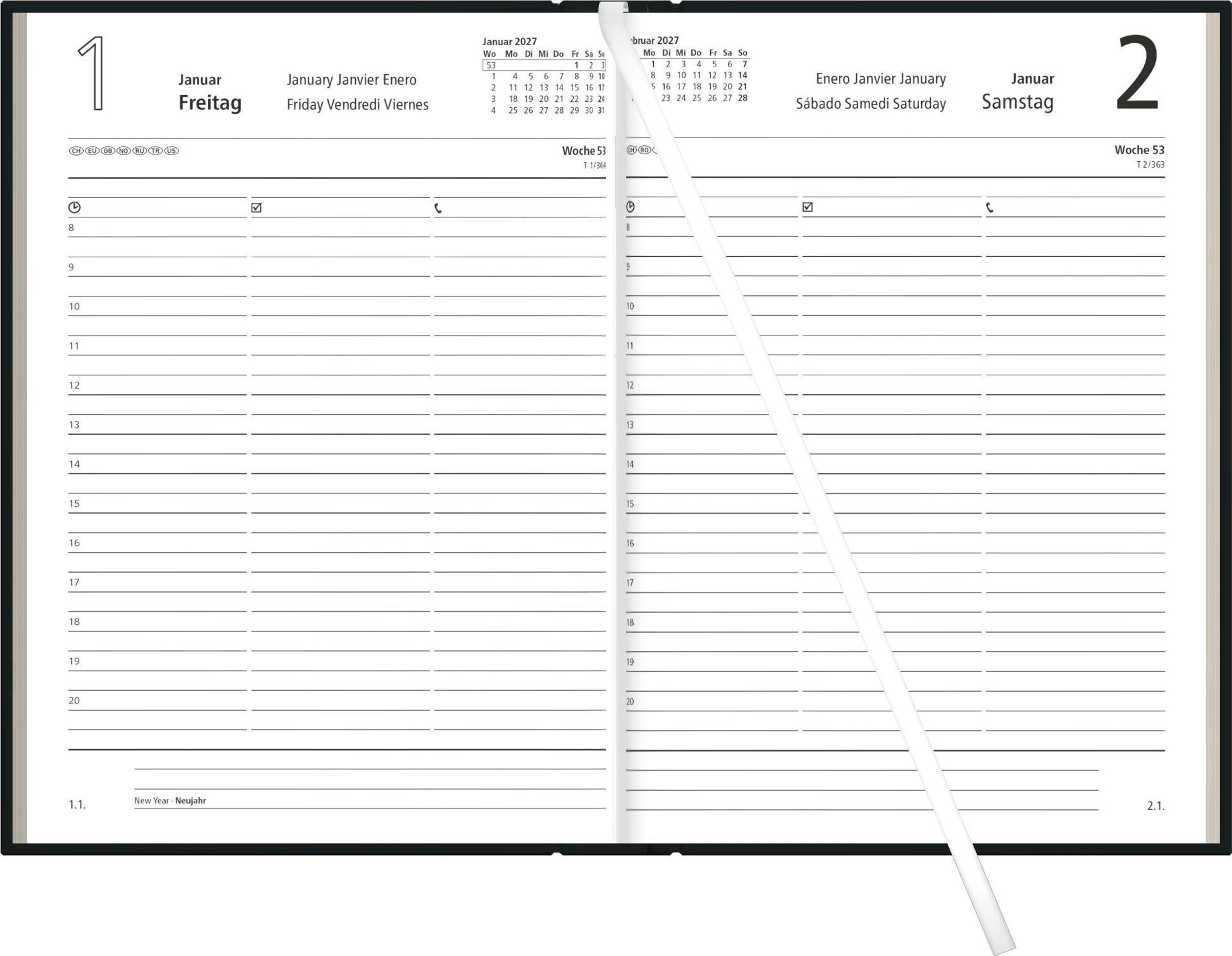 Buchkalender 1T/1S schwarz 2027