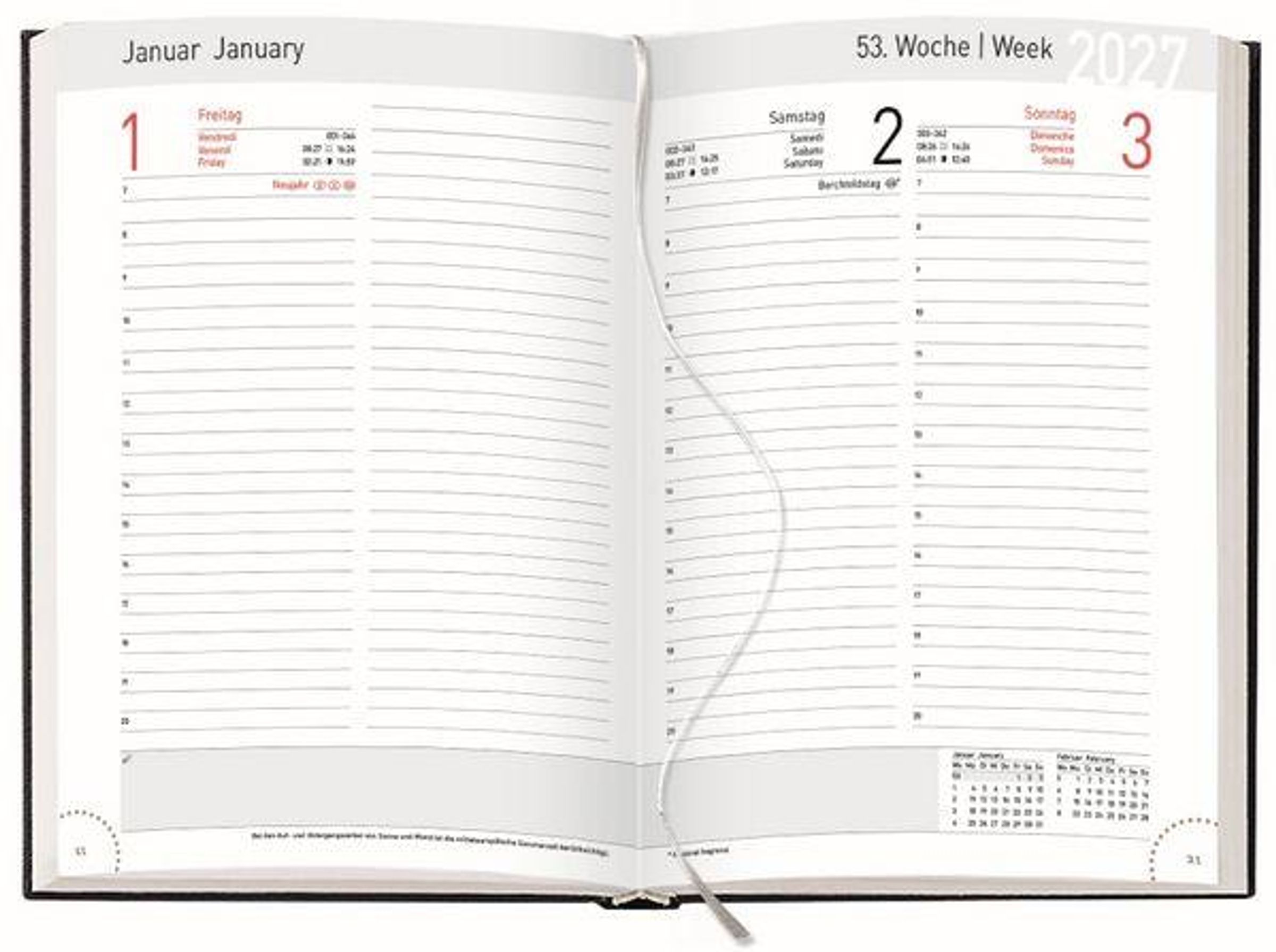 • Terminplaner mit Tageskalendarium. Din A5 Terminkalender 1 Tag 1 Seite. Extra Platz für Notizen.