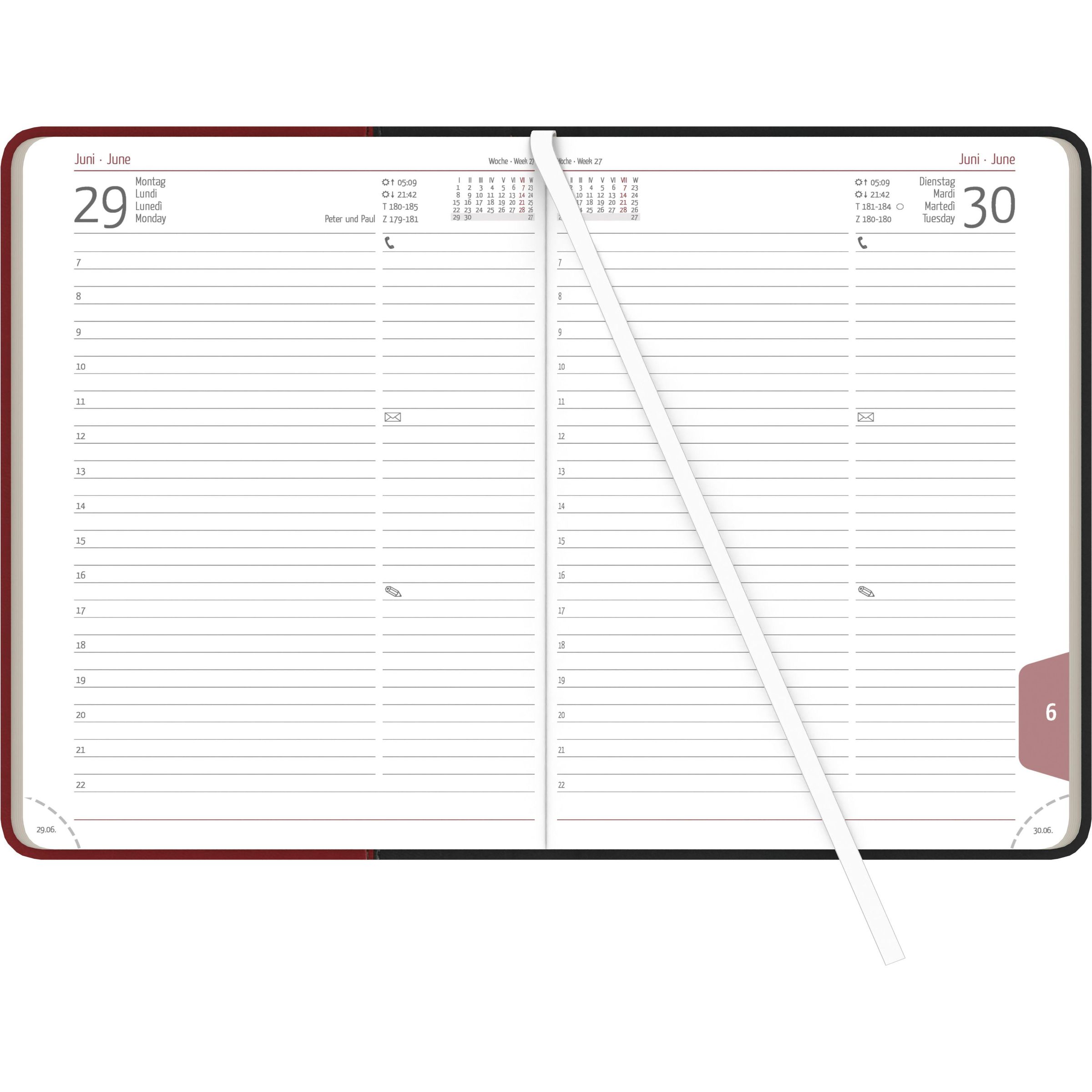 Format & Ausstattung: 15 × 21 cm (A5), zahlreiche Zusatzseiten für Adressen und Notizen, hergestellt in Deutschland