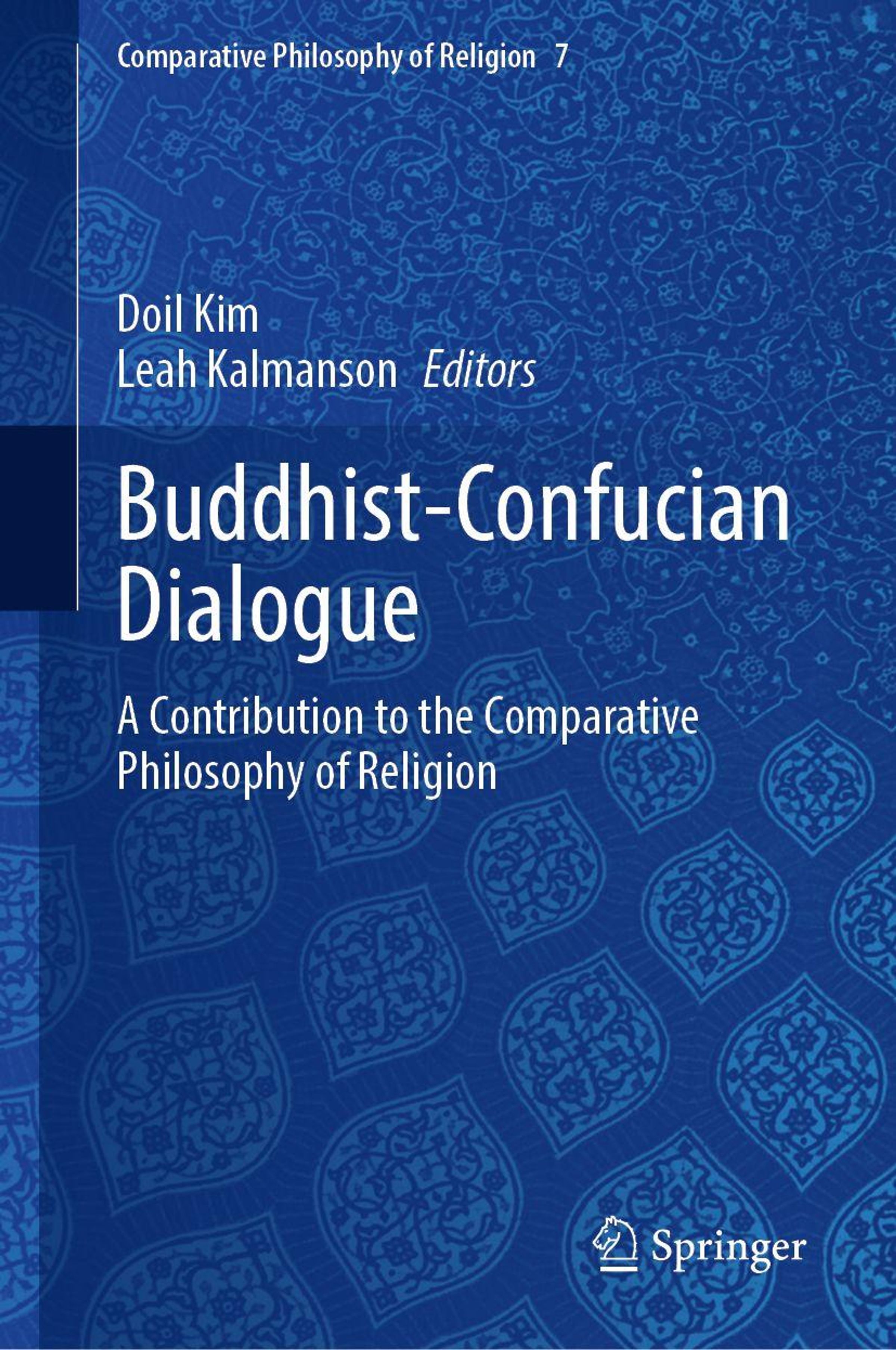 Titel: Buddhist-Confucian Dialogue. Autoren: Doil Kim, Leah Kalmanson. Hintergrund: blau mit stilisiertem Muster., Buch