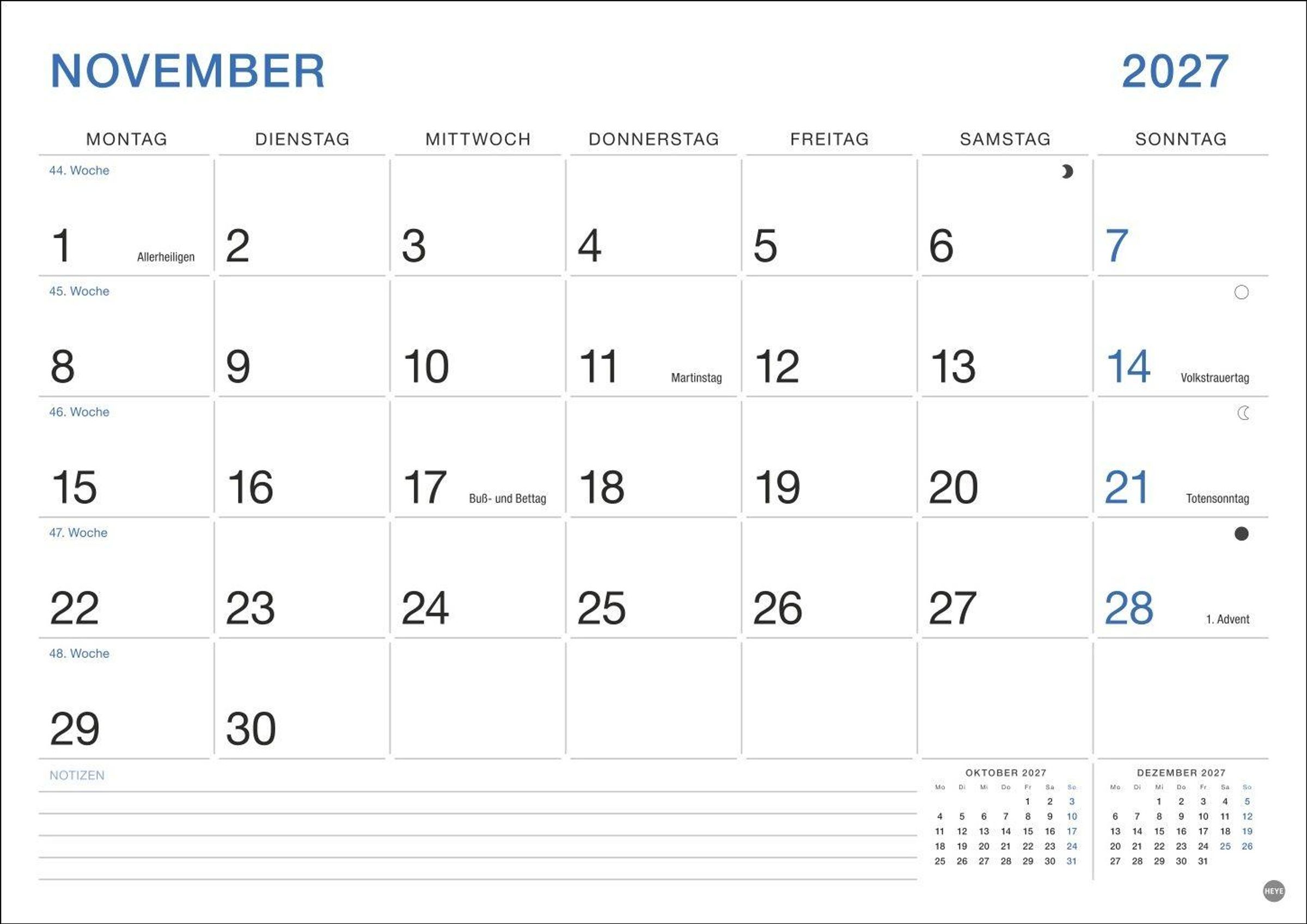 Büro Monatsplaner 2027 (Kalender)