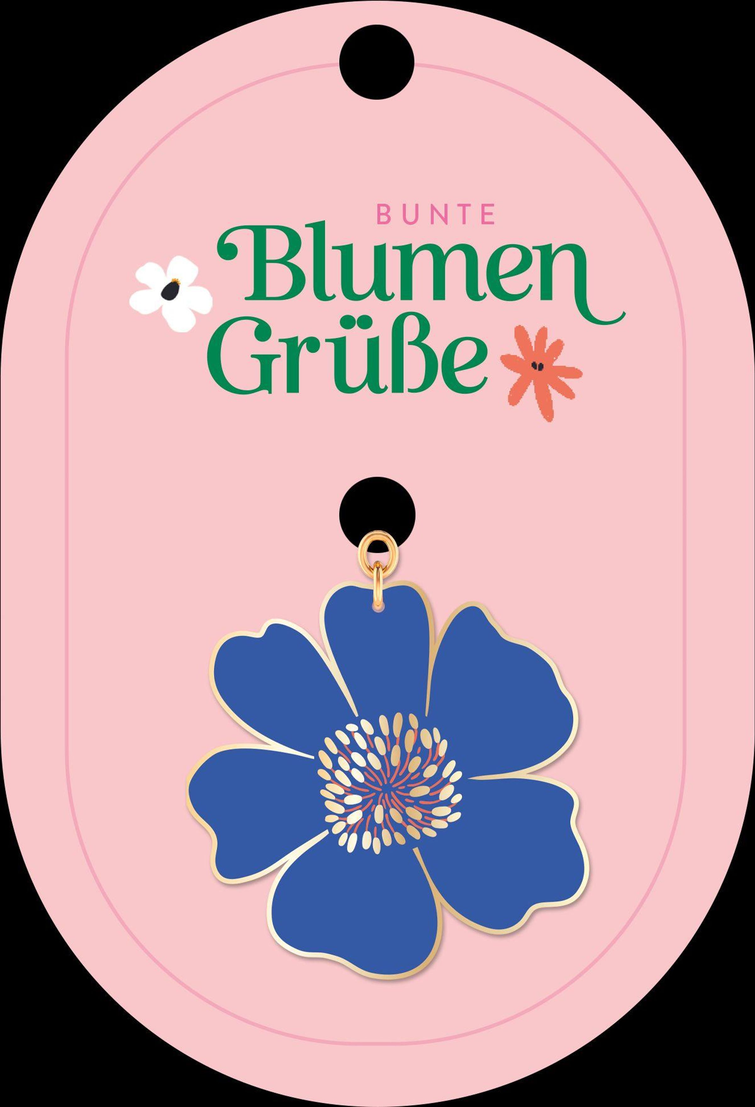 Bunte Blumengrüße Emaille-Schlüsselanhänger royalblau (Sonstige Artikel)
