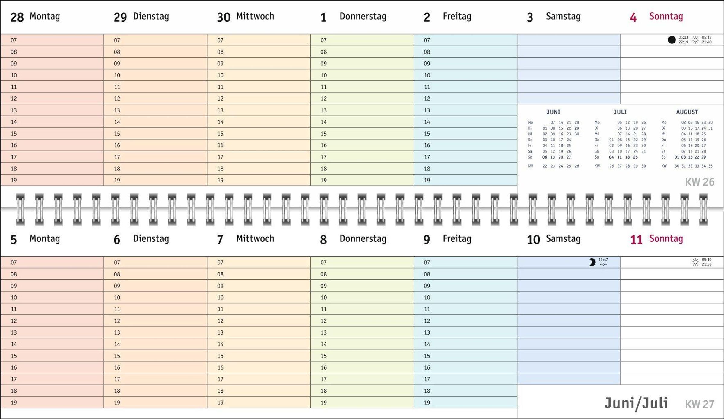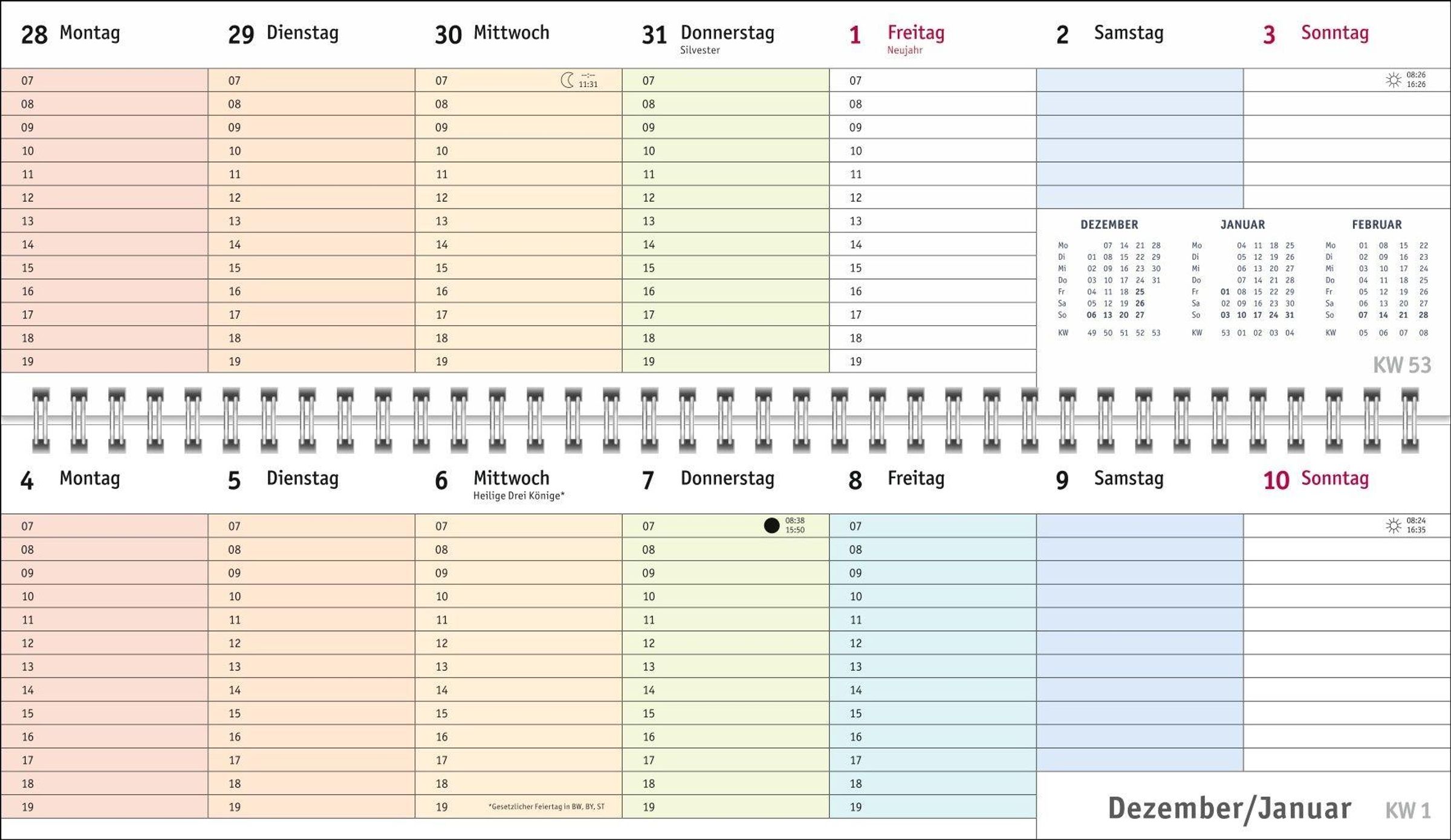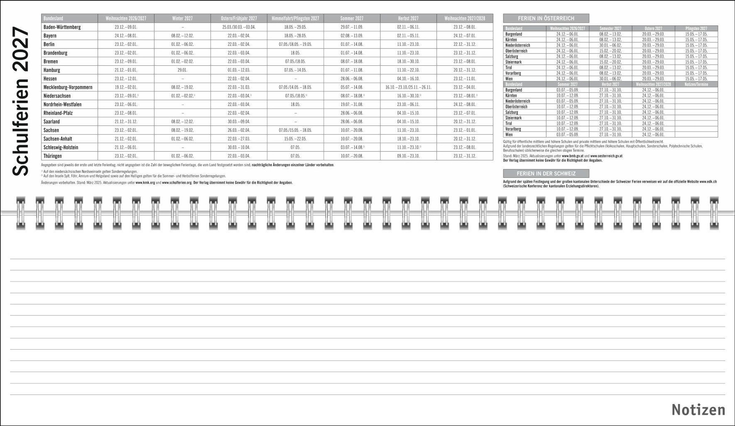 Woche für Woche ein zuverlässiger Terminplaner, auch über das Jahr hinaus: Mit Jahresübersichten 2027 und 2028 und Schulferien
