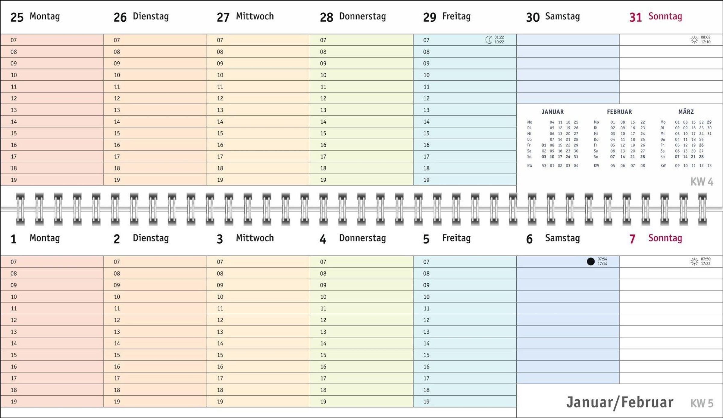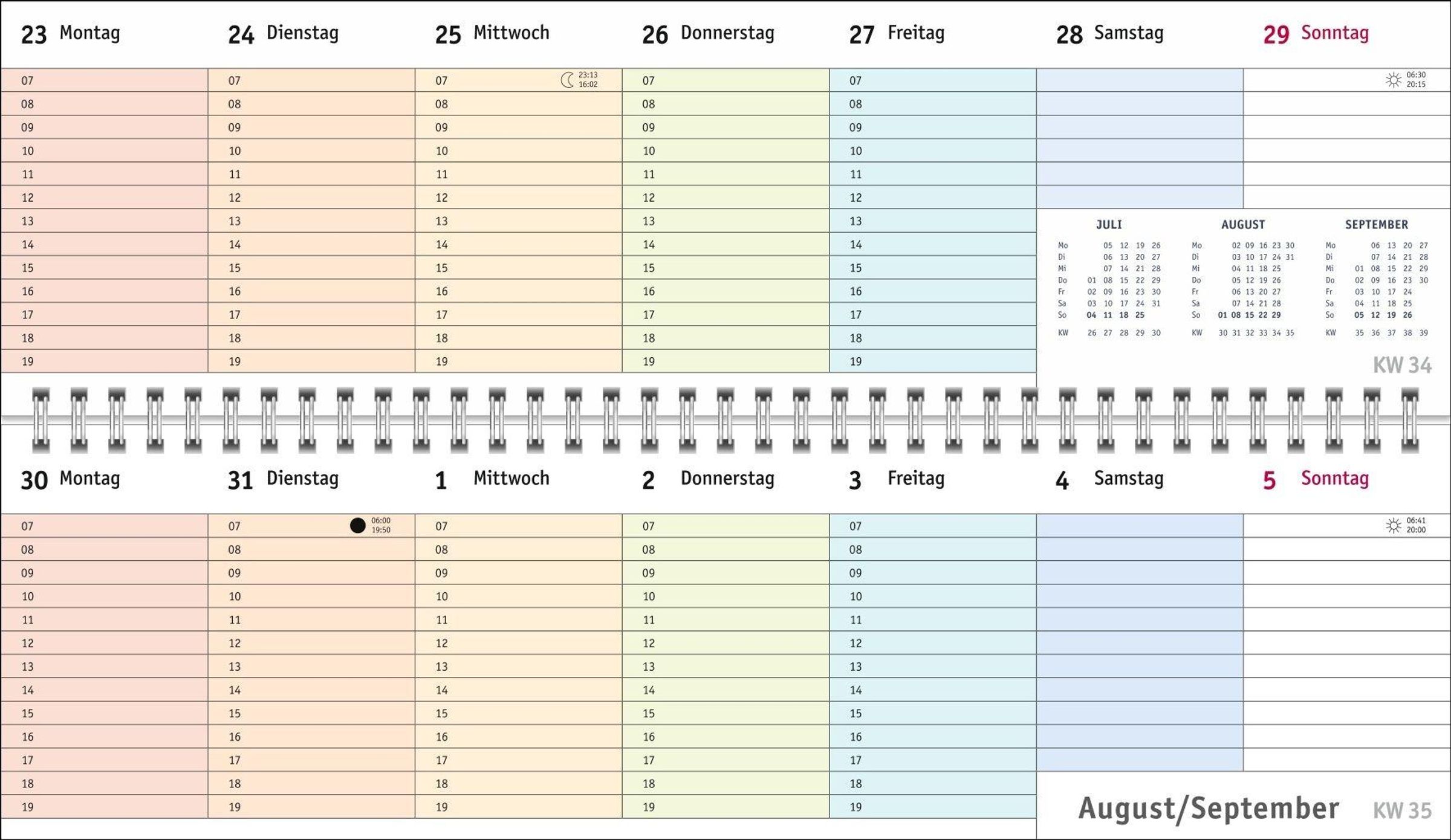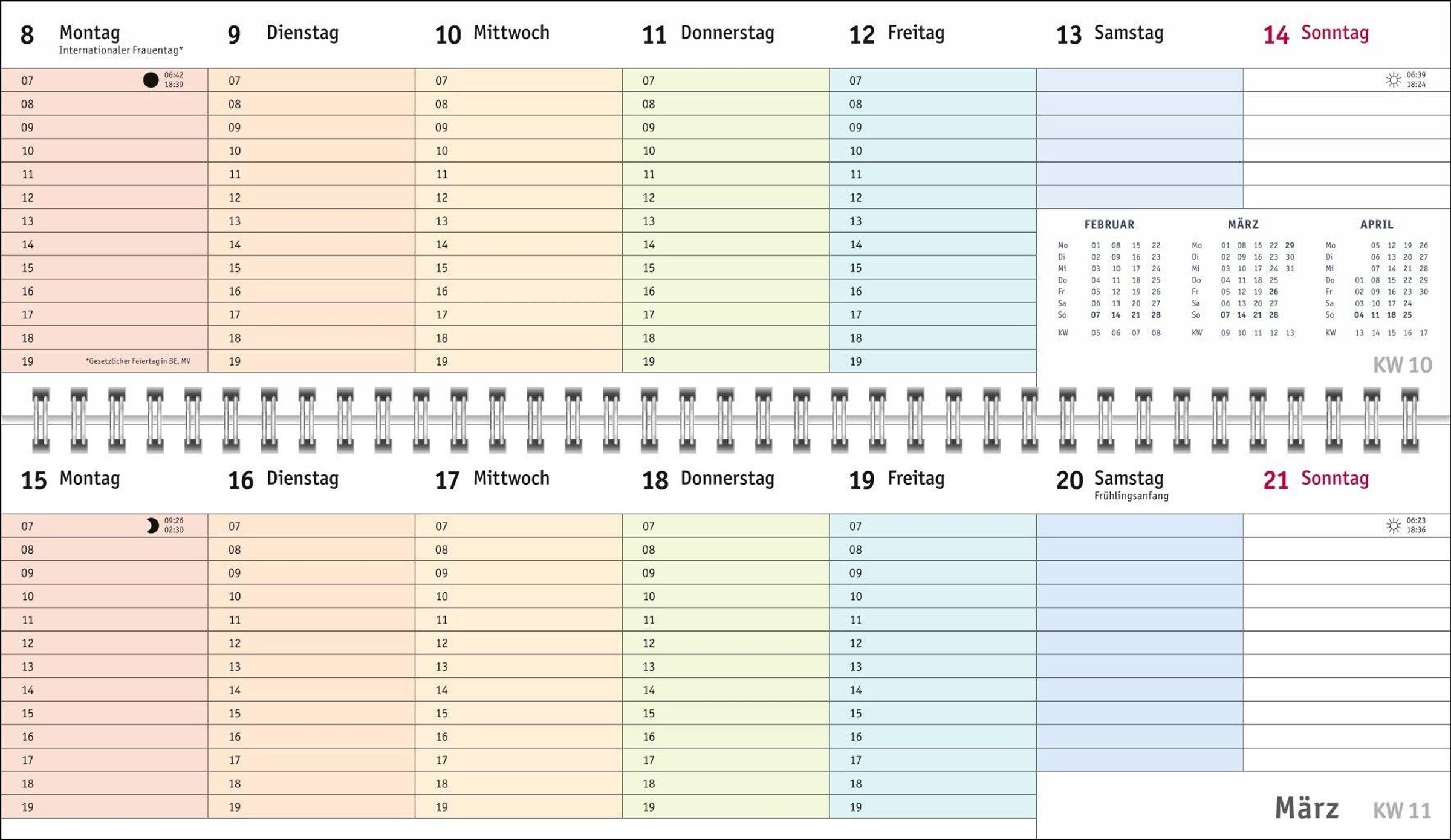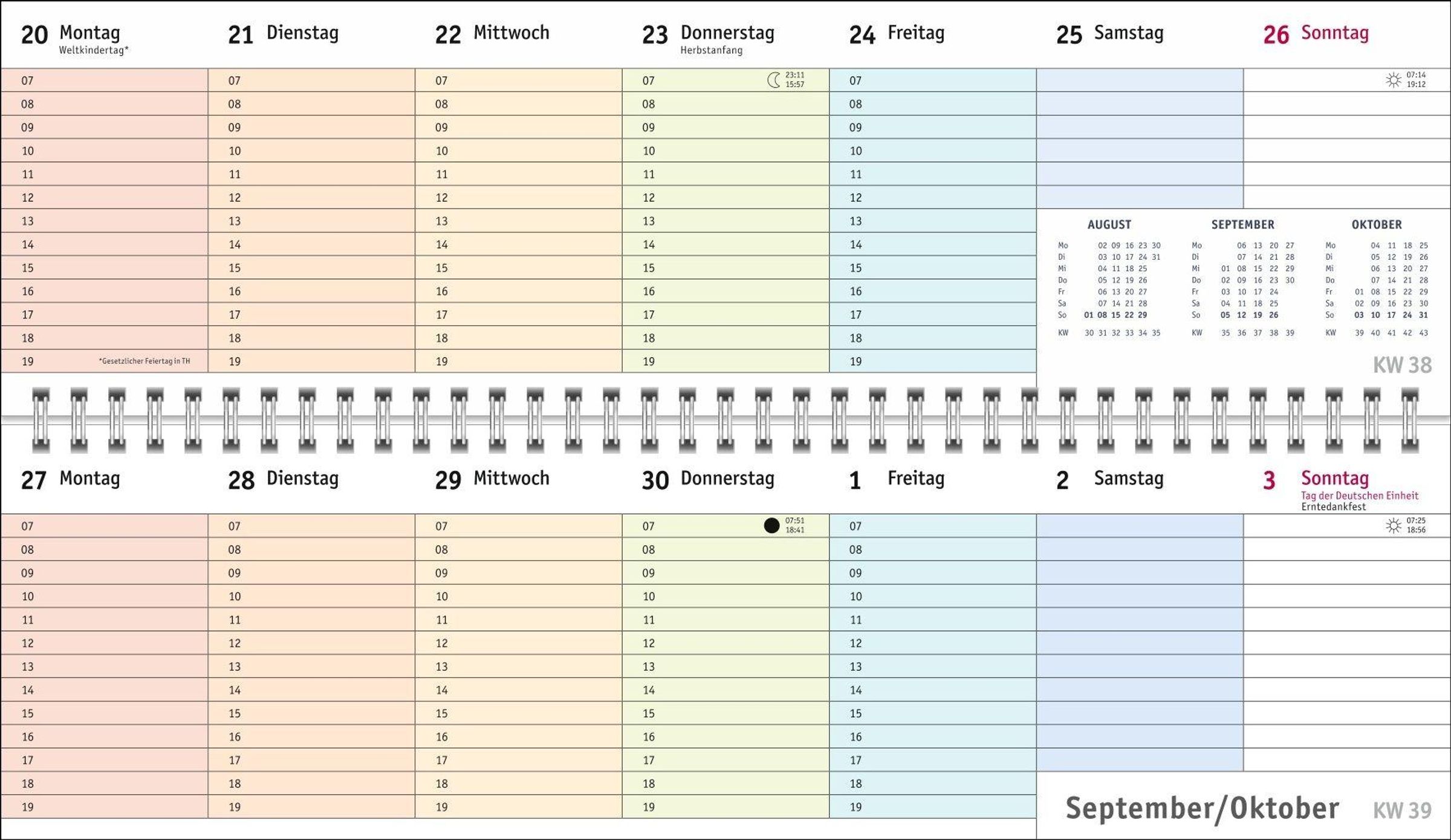 Woche für Woche ein zuverlässiger Terminplaner, auch über das Jahr hinaus: Mit Jahresübersichten 2027 und 2028 und Schulferien