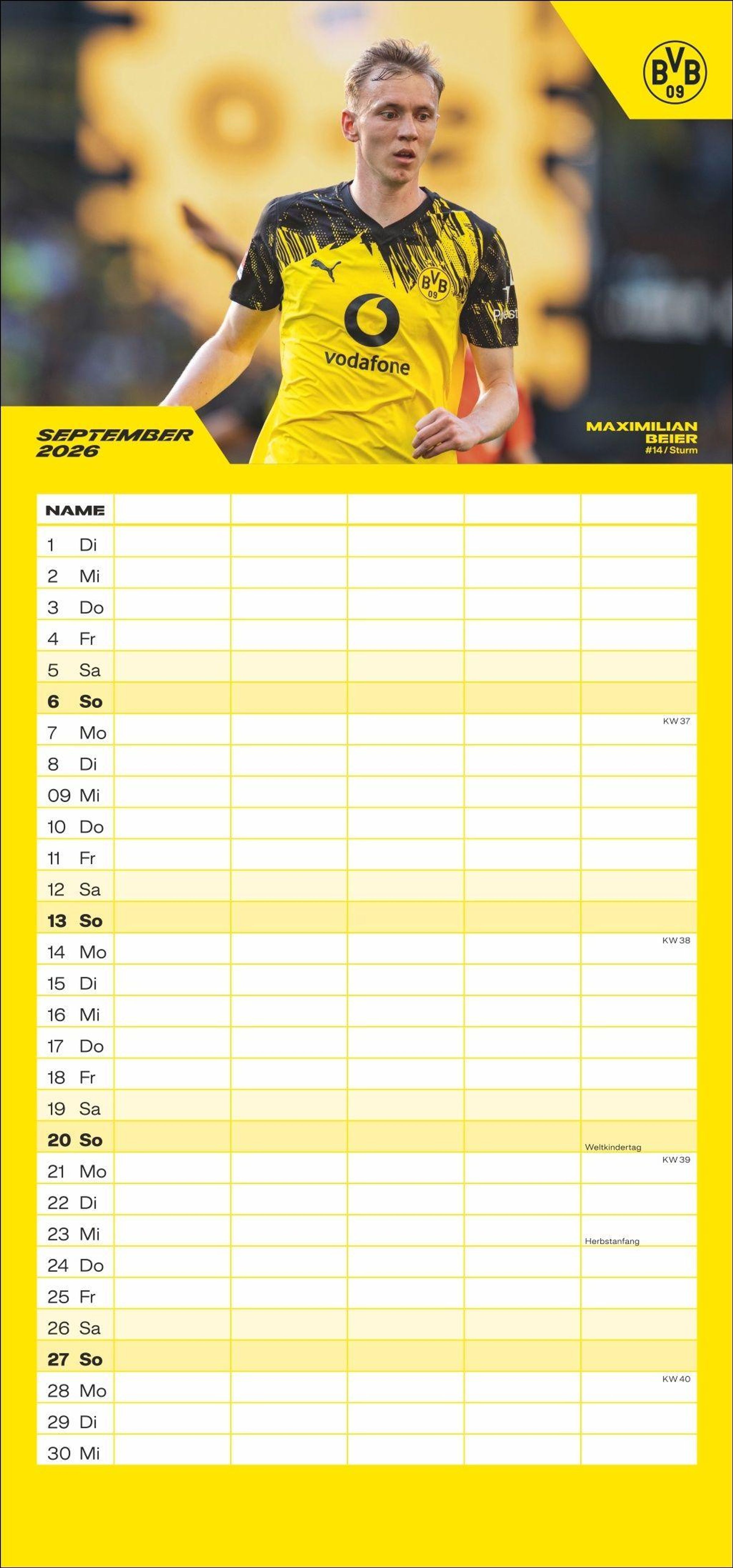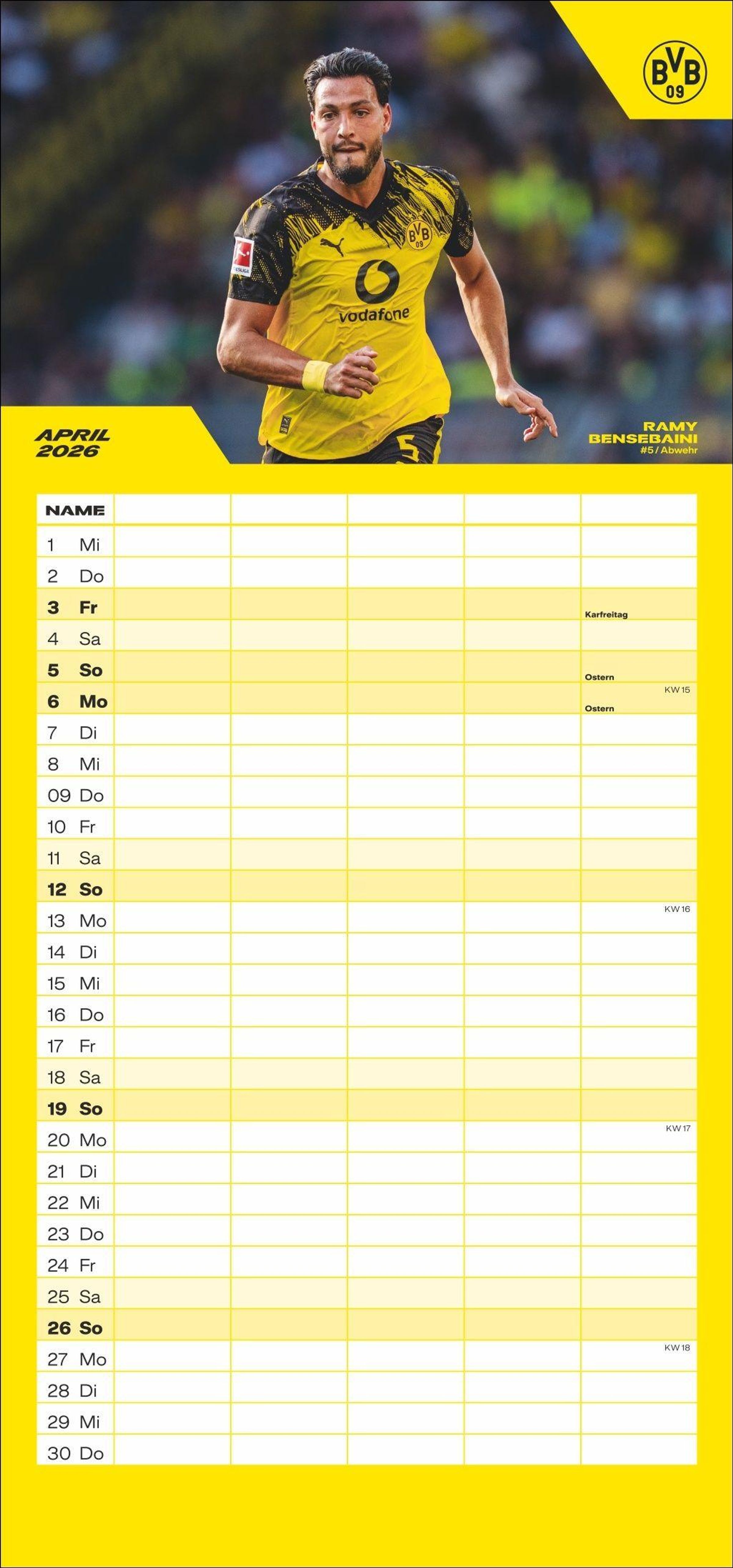 - Der Kalender für Fußball-Familien: Terminplaner mit 5 Spalten und den Stars des BVB. Ein Familien-Kalender mit viel Platz für Notizen.