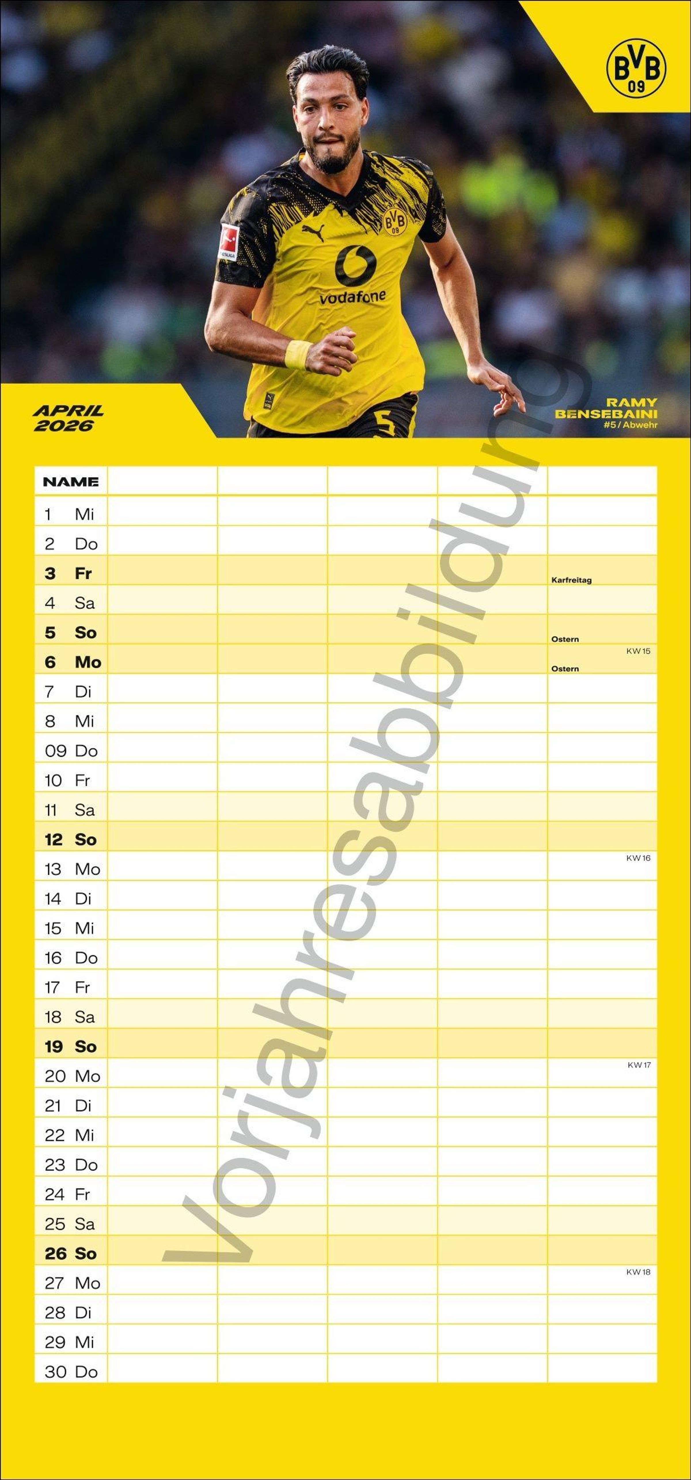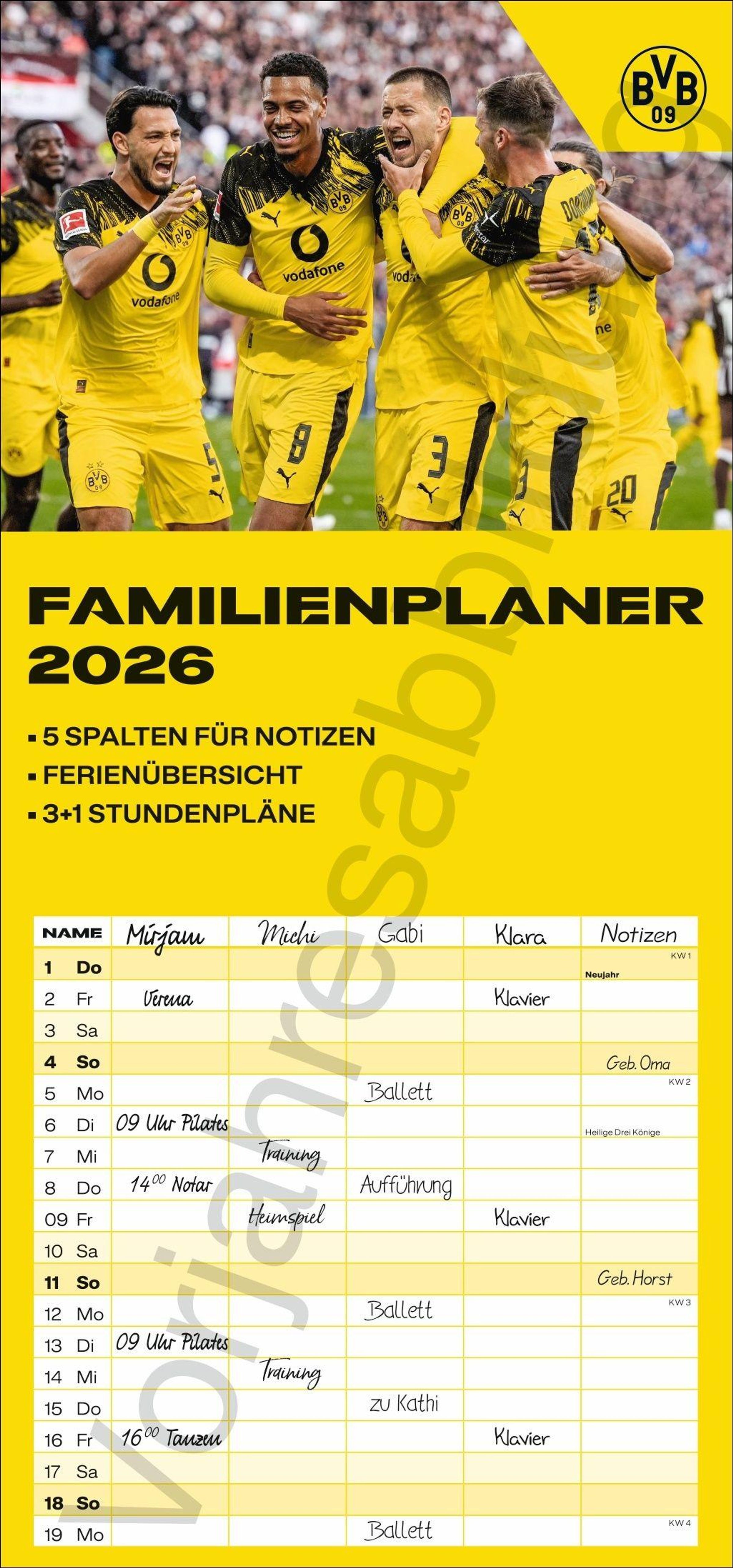 - Der Kalender für Fußball-Familien: Terminplaner mit 5 Spalten und den Stars des BVB. Ein Familien-Kalender mit viel Platz für Notizen.