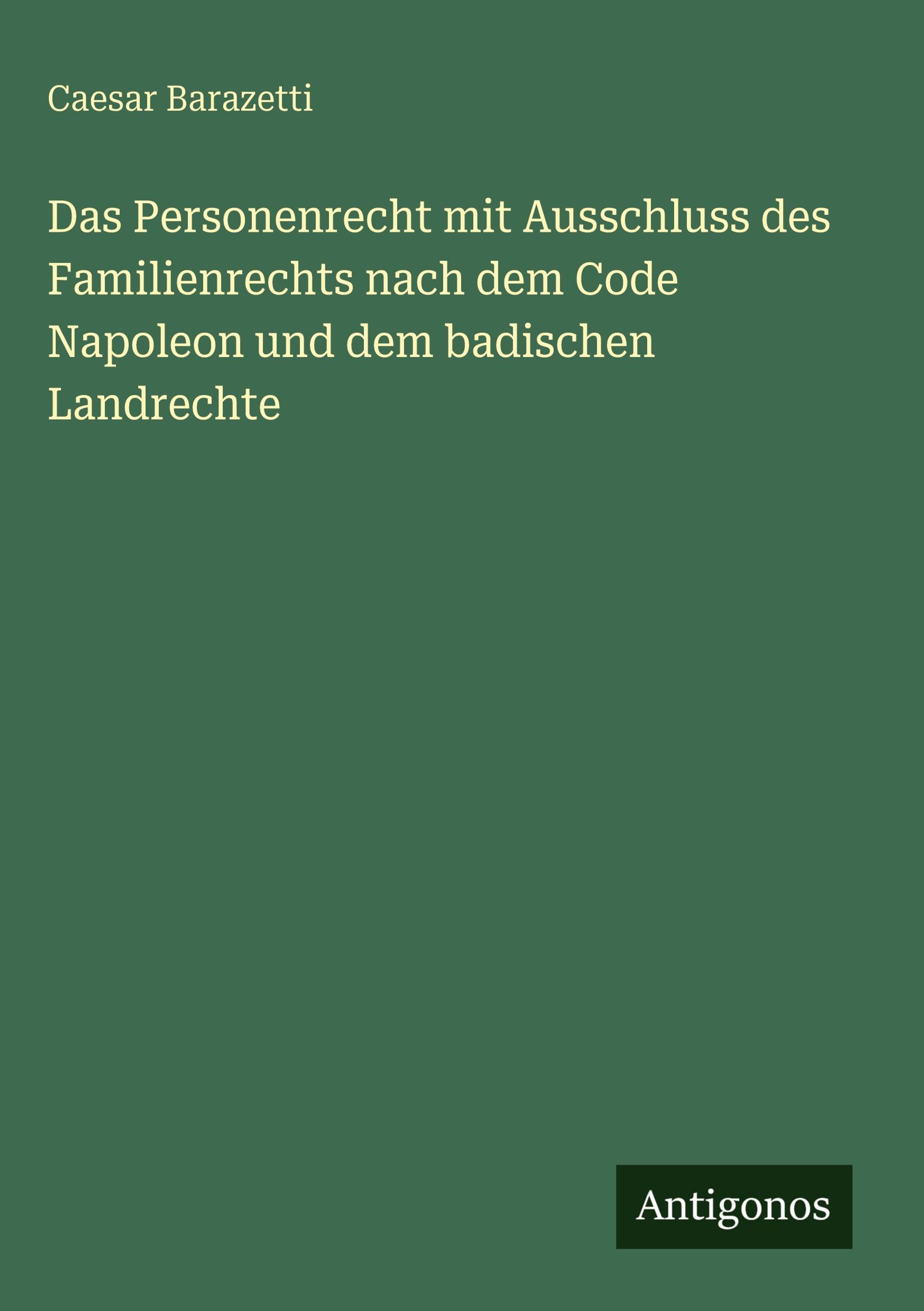 Caesar Barazetti: Das Personenrecht mit Ausschluss des Familienrechts nach dem Code Napoleon und dem badischen..., Gebunden