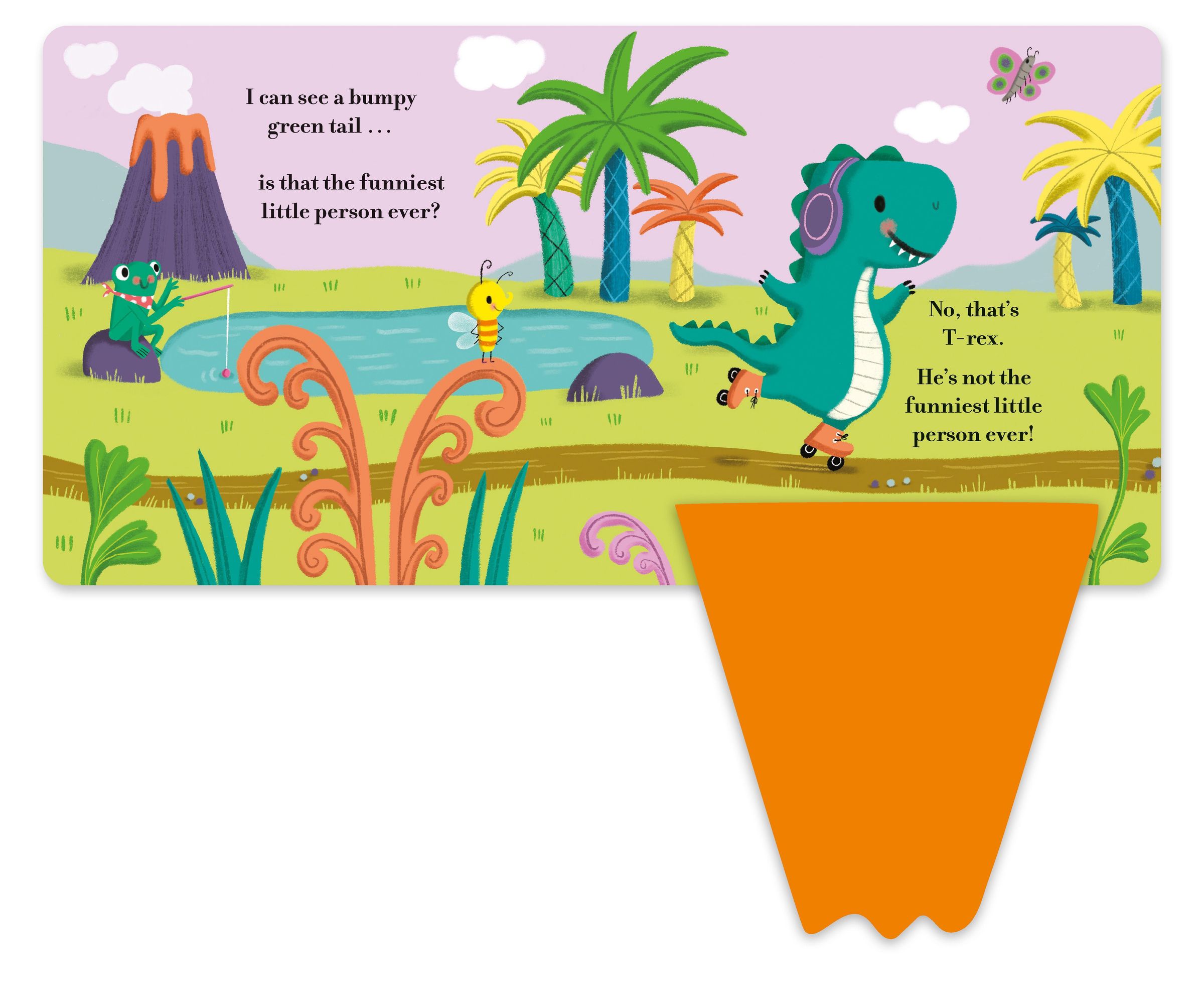 A cute dinosaur book with felt flaps to lift and a surprise mirror ending