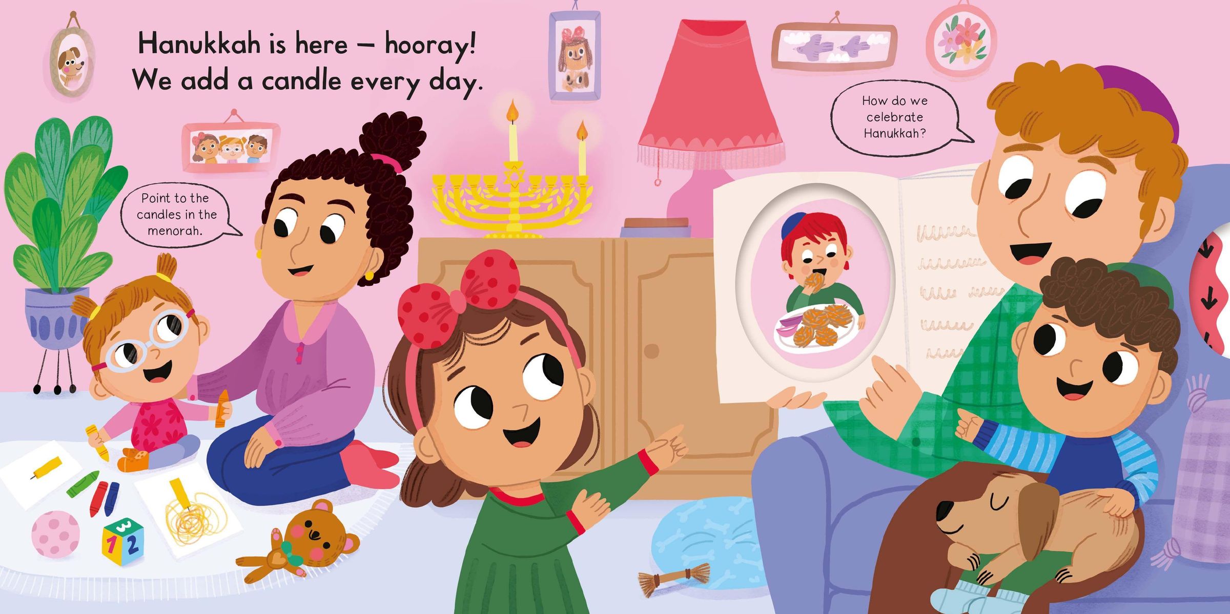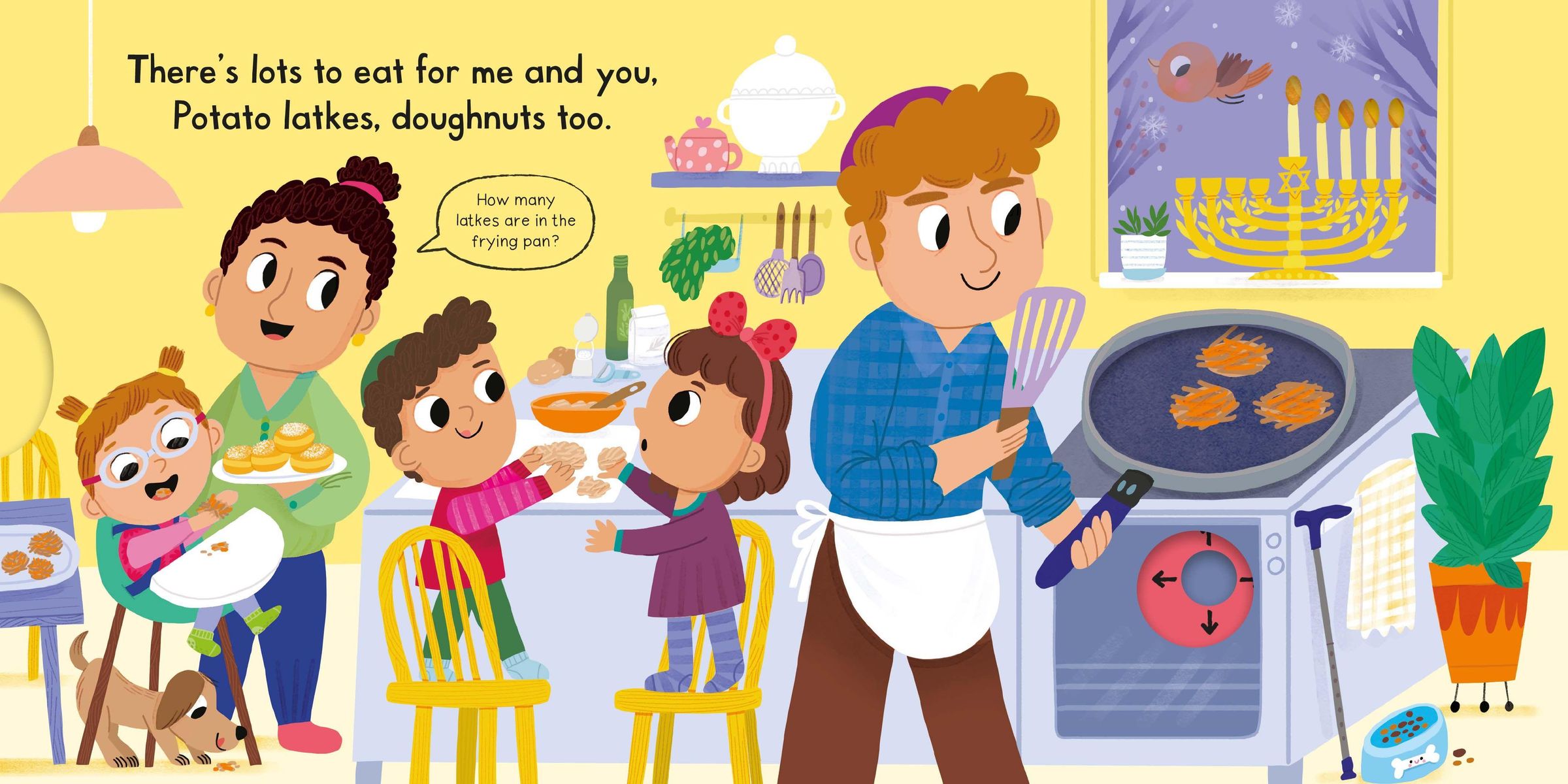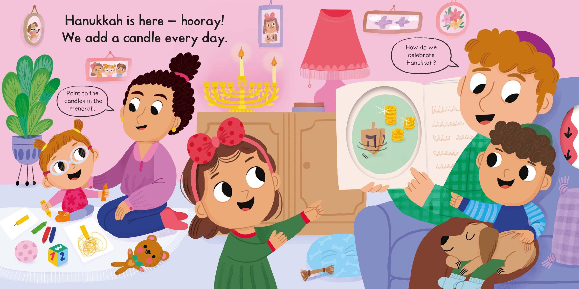 Push, pull and slide the tabs to celebrate the festival of Hanukkah in Busy Hanukkah! Join in to learn about the celebration, make yummy potato latkes, play a game of dreidl and light the menorah.