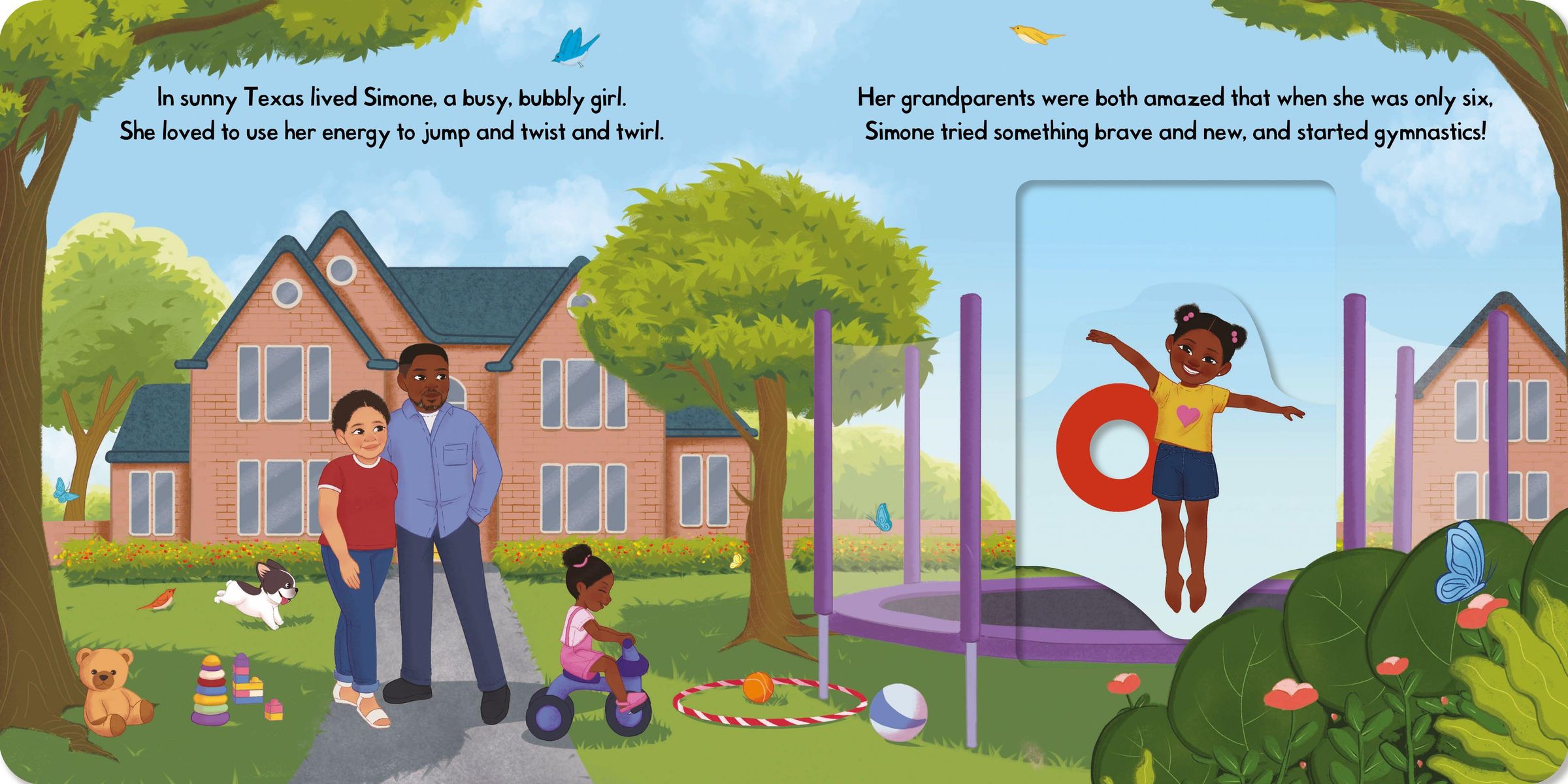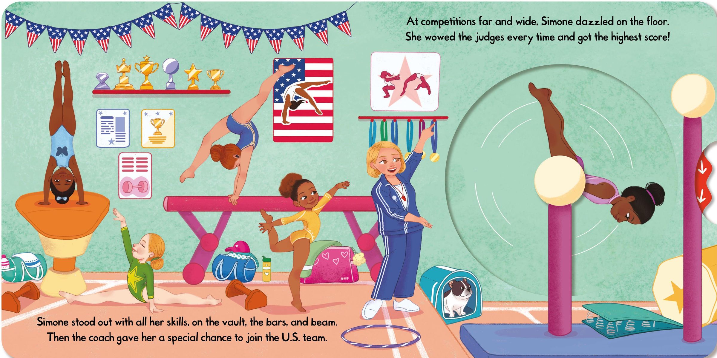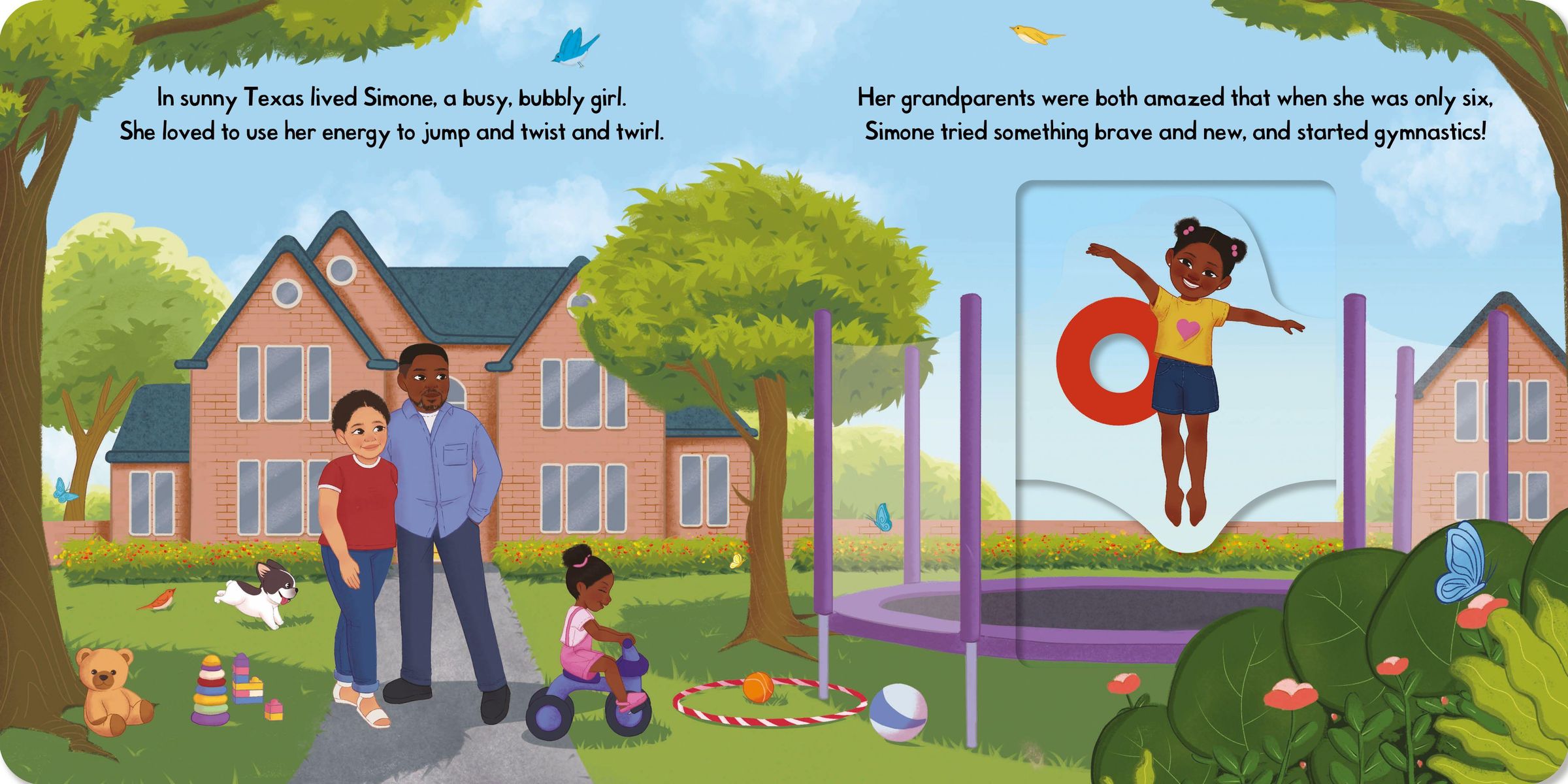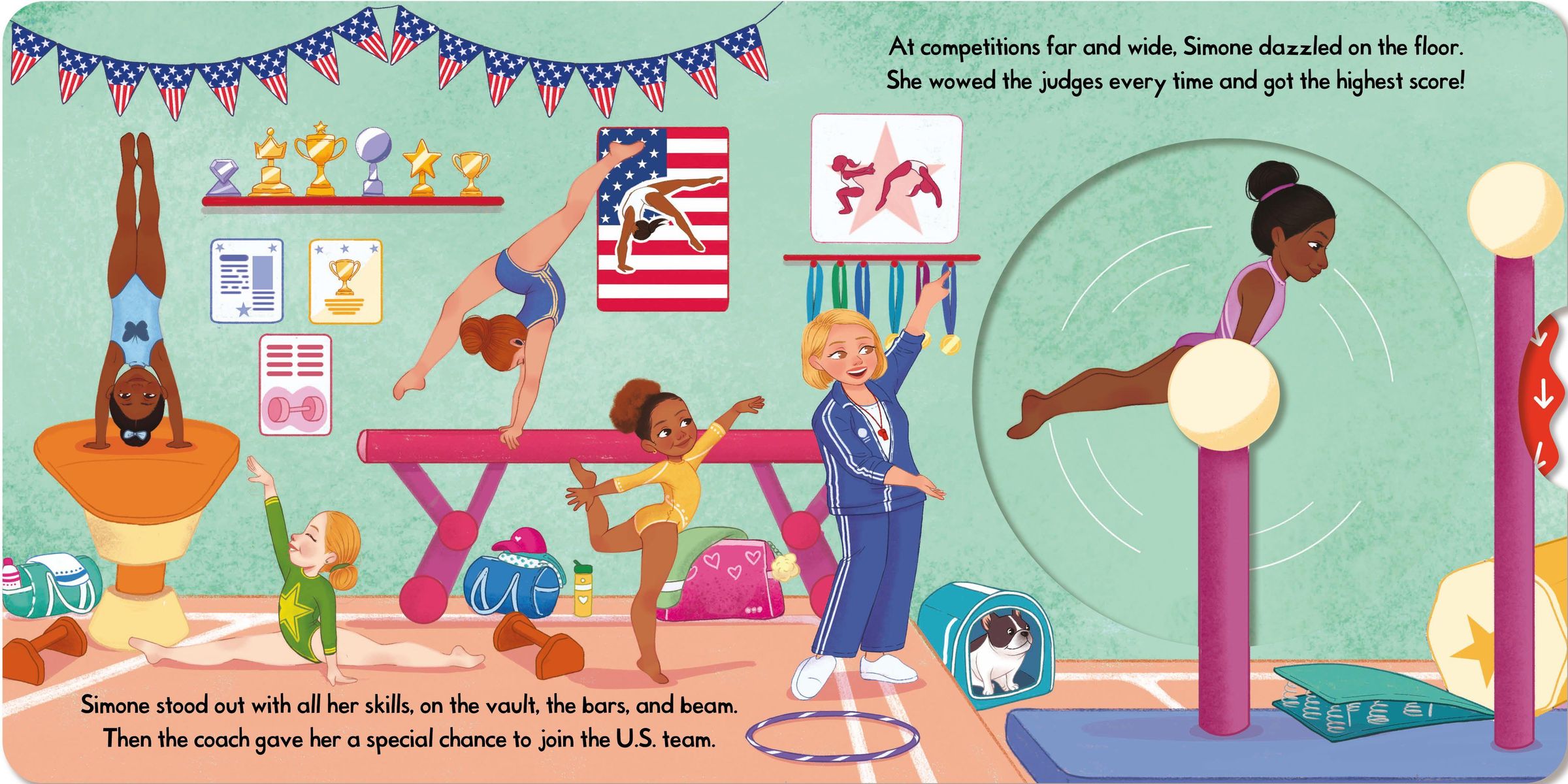 A first novelty book about gymnast Simone Biles, featuring push, pull and slide mechanisms.