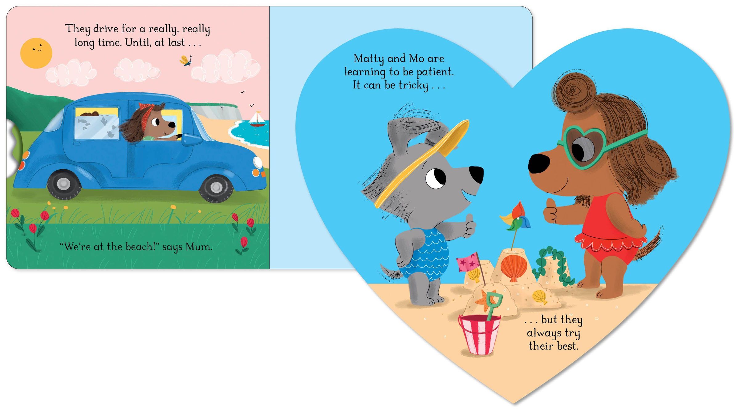 In Are We There Yet? , Matty and Mo are going to the beach. It's a long drive in the car, so the two little pups will need to try and be patient. Armed with snacks, sticker books and toys, they set off! But five minutes down the road, Mum hears a familiar question . . .