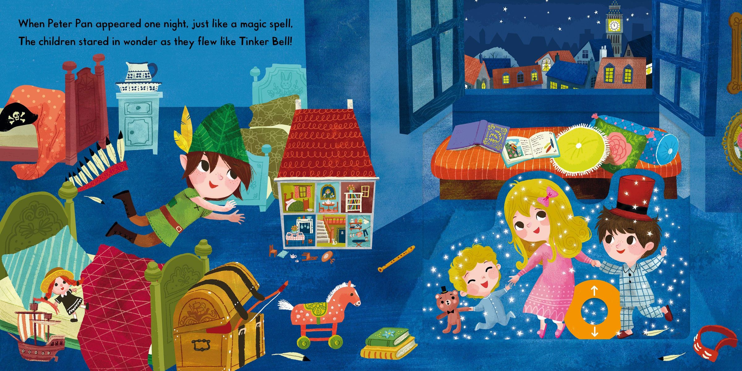 Push, pull and slide the colourful scenes to discover J. M. Barrie's classic story, Peter Pan !
