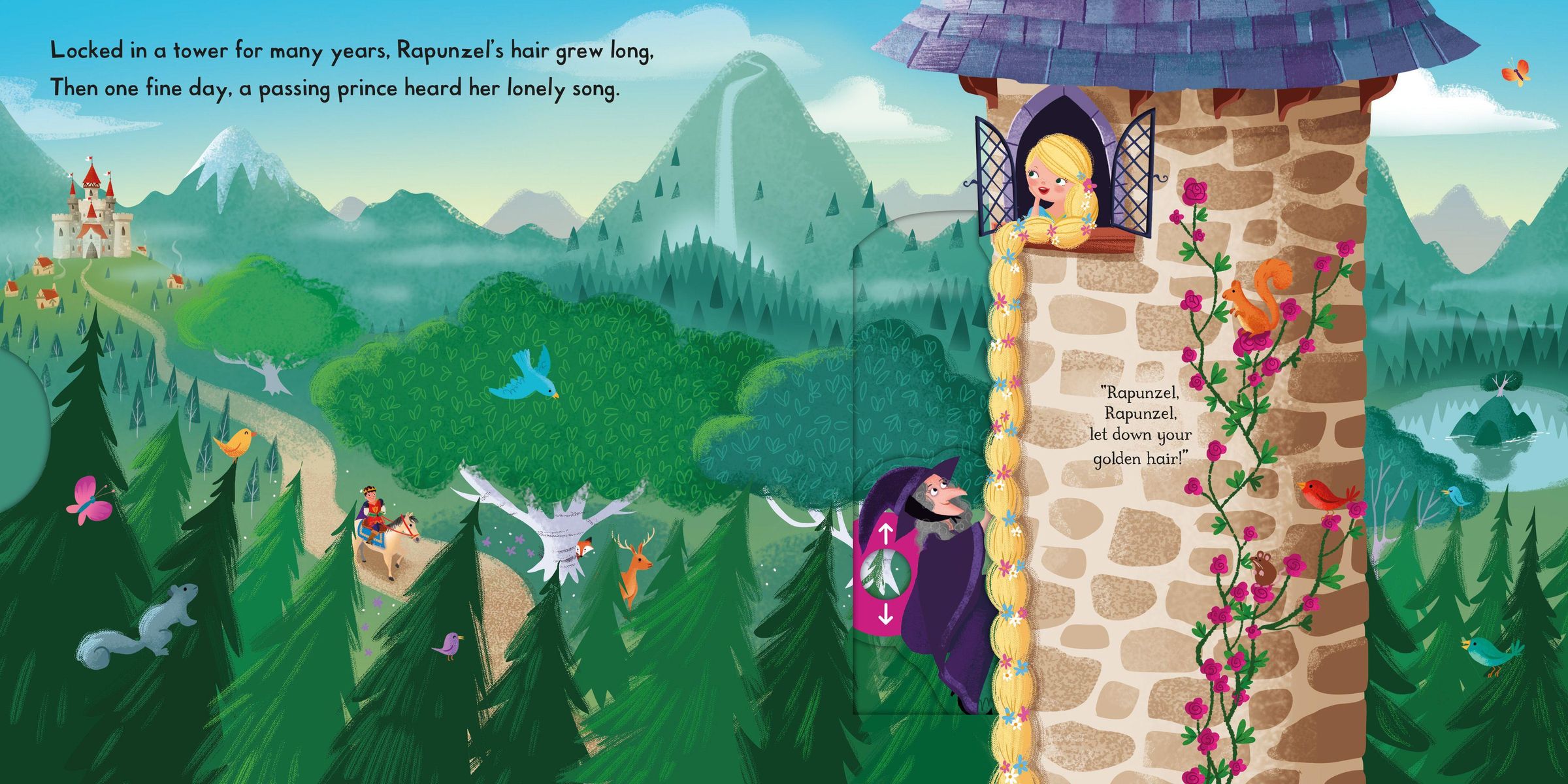 Push, pull and slide the colourful scenes to bring a classic fairy tale to life in this delightful introduction for toddlers to Rapunzel !