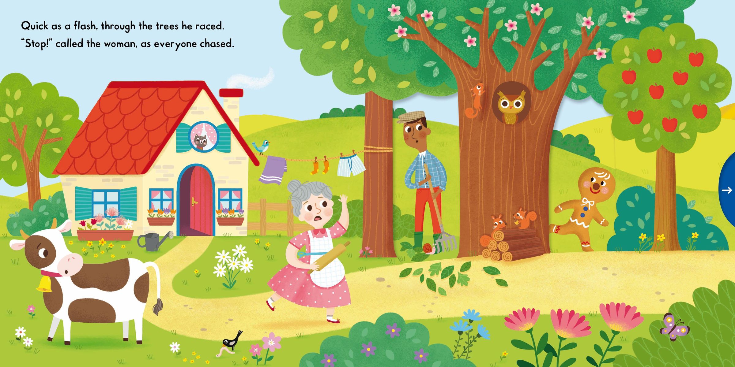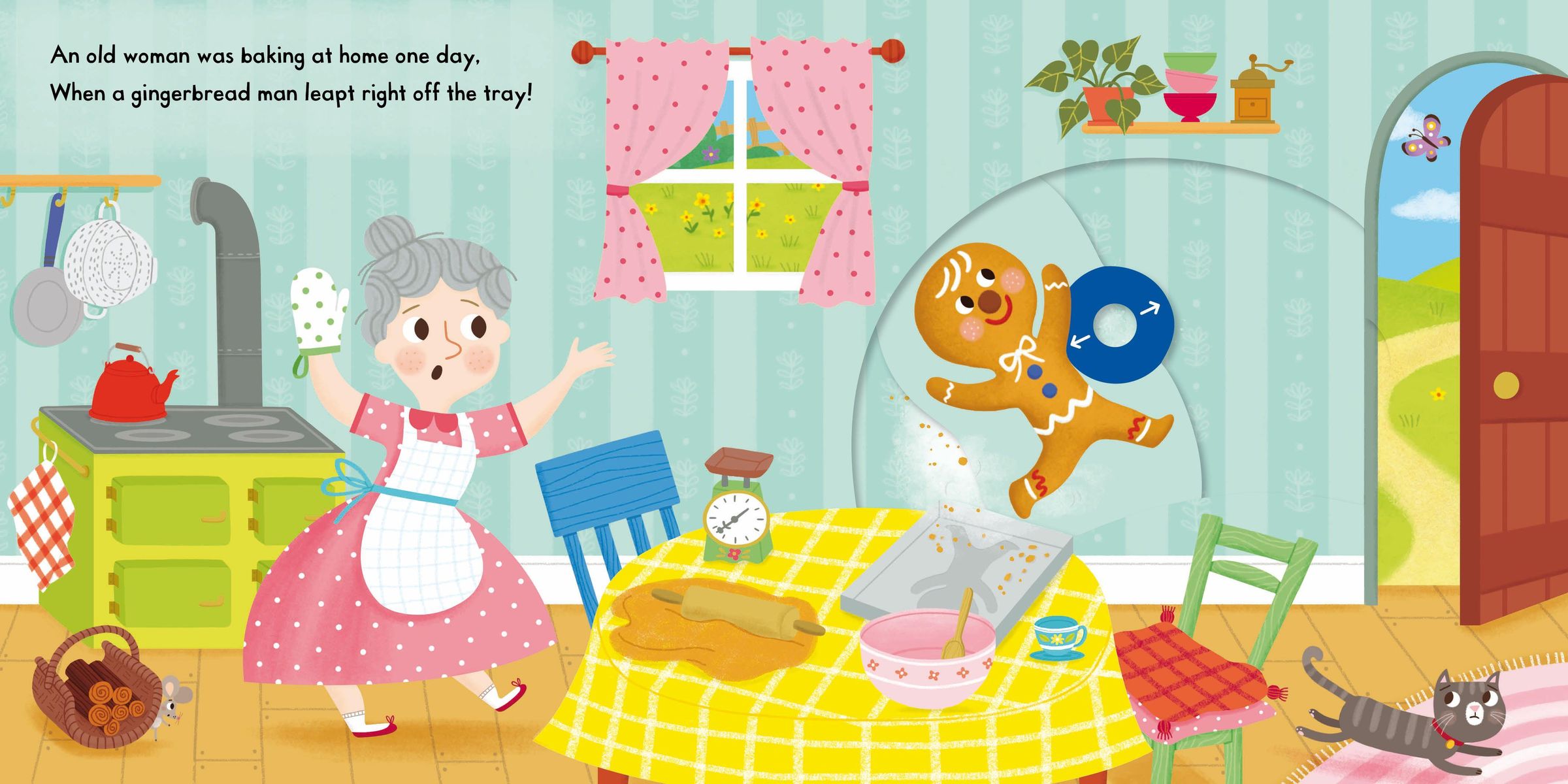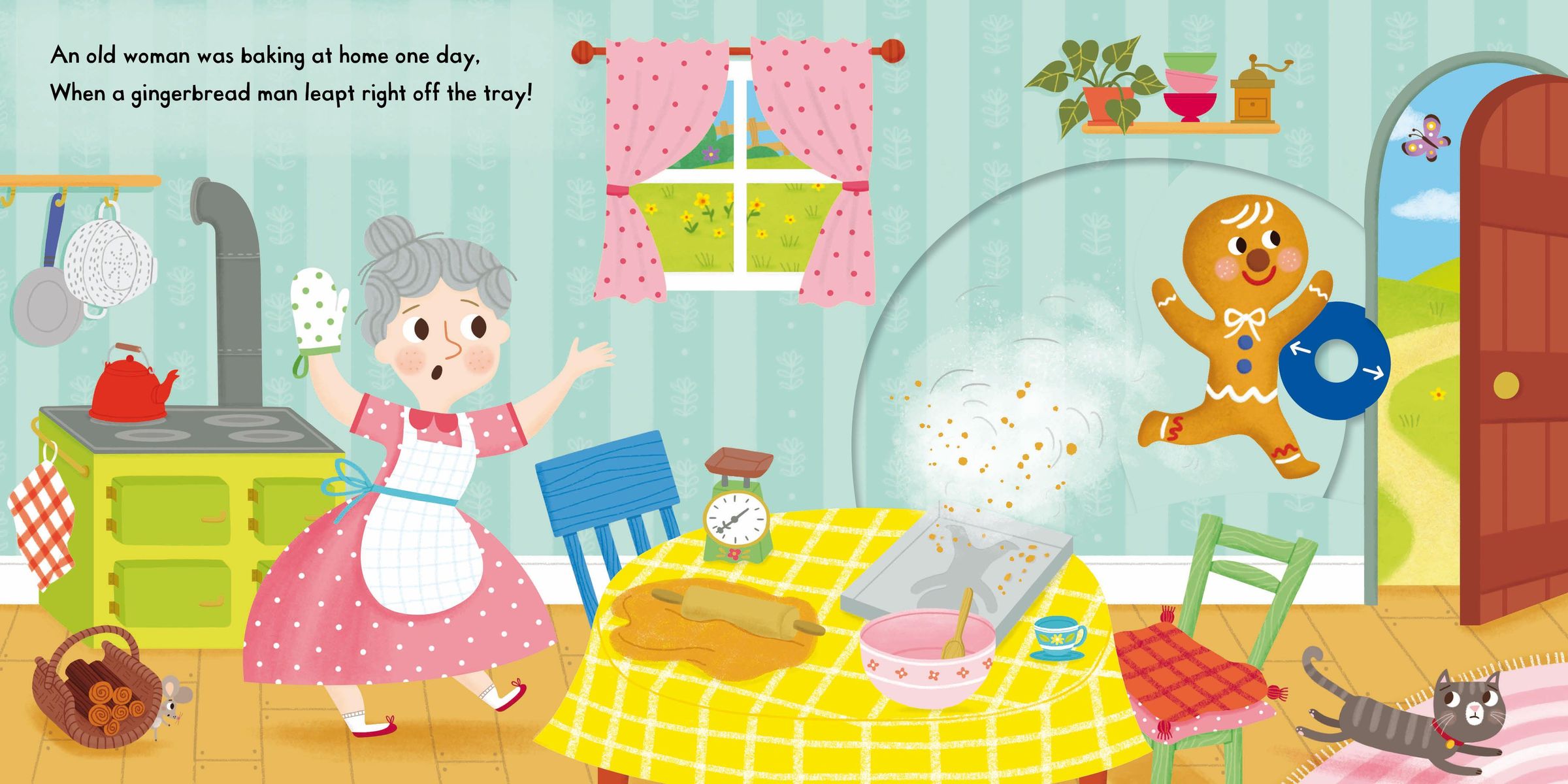 Push, pull and slide the scenes to discover the classic nursery tale of The Gingerbread Man!