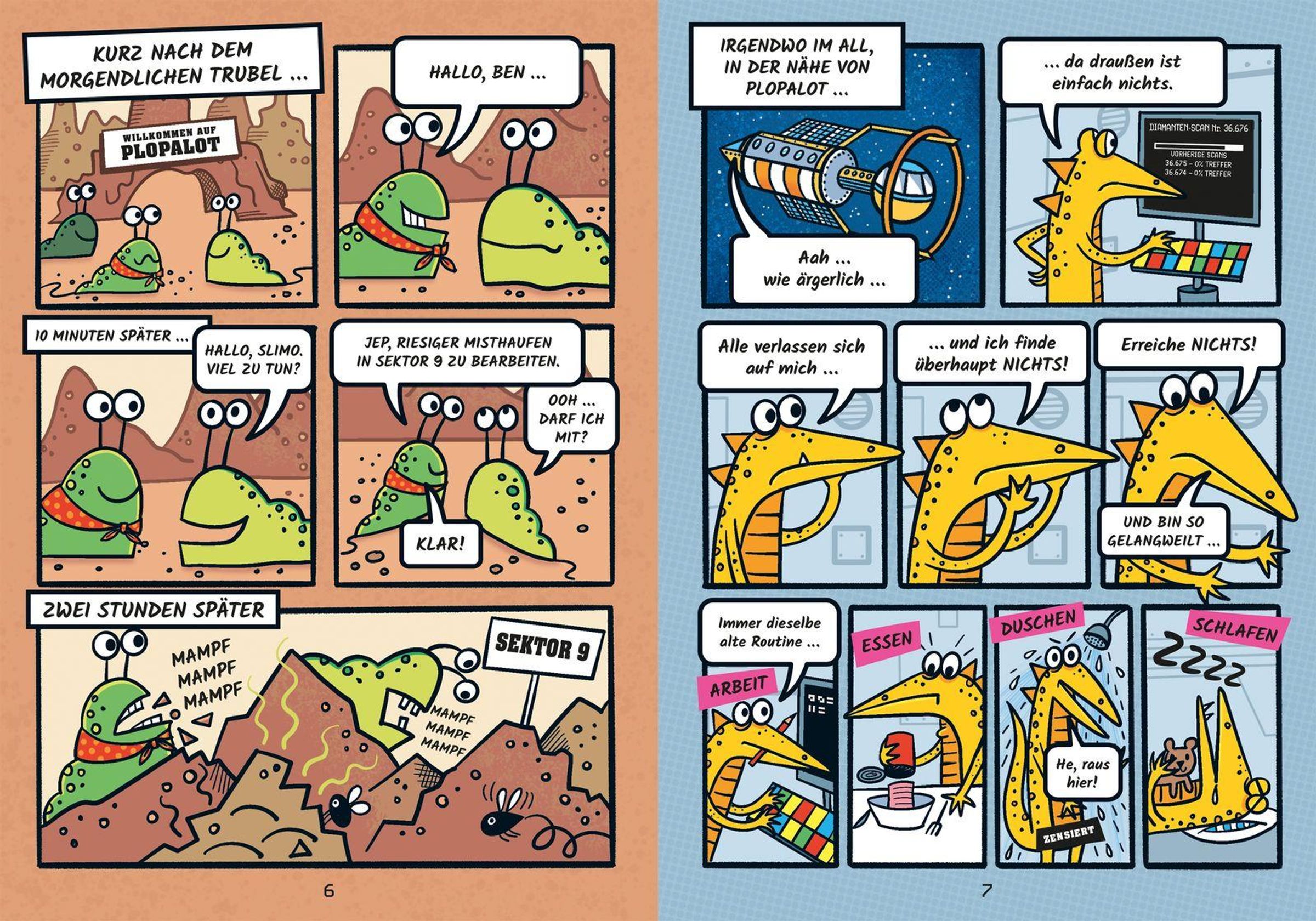 Dieses urkomische Comic-Weltraum-Abenteuer ist ein Page-Turner für alle jungen Leser*innen, die schräge Geschichten und (Fäkal-)Humor lieben!
