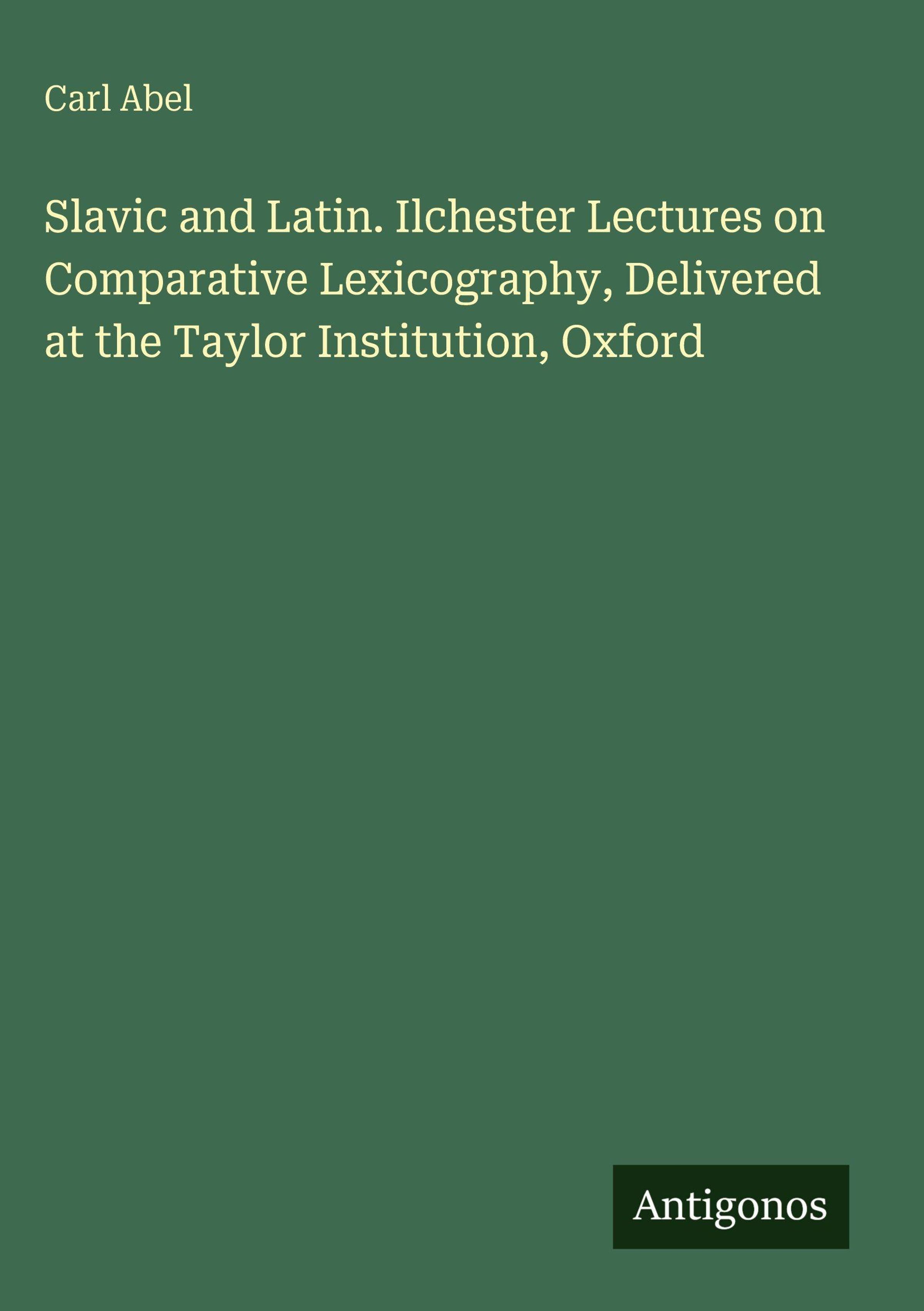 Carl Abel: Slavic and Latin. Ilchester Lectures on Comparative Lexicography, Delivered at the Taylor..., Gebunden