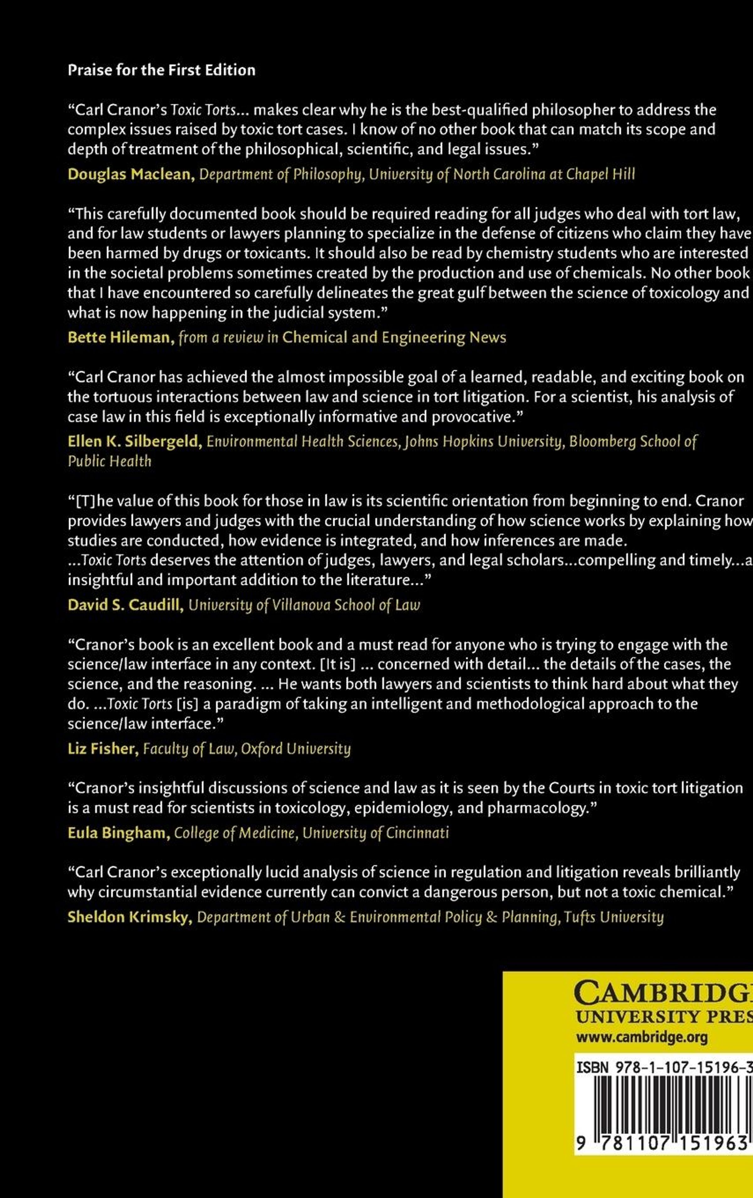 US tort law, cloaked behind increased judicial review of science, is changing before our eyes yet we cannot see it. While Supreme Court decisions have altered how courts review scientific testimony, the complexity of both science and legal procedures mask the resulting social consequences. Yet these consequences are too important to remain hidden. Mistaken court reviews of scientific evidence can decrease citizen access to the law, decrease incentives for firms to test their products, lower deterrence for harmful products, and decrease the possibility of justice for citizens injured by toxic substances. Even if courts review evidence well, increases in litigation costs and attorney screening of clients can impede access to the law. Newly revised and expanded, Toxic Torts, 2nd edition introduces these issues, reveals the relationships that can deny citizens just restitution for harms suffered, and shows how justice can be improved in toxic tort cases.