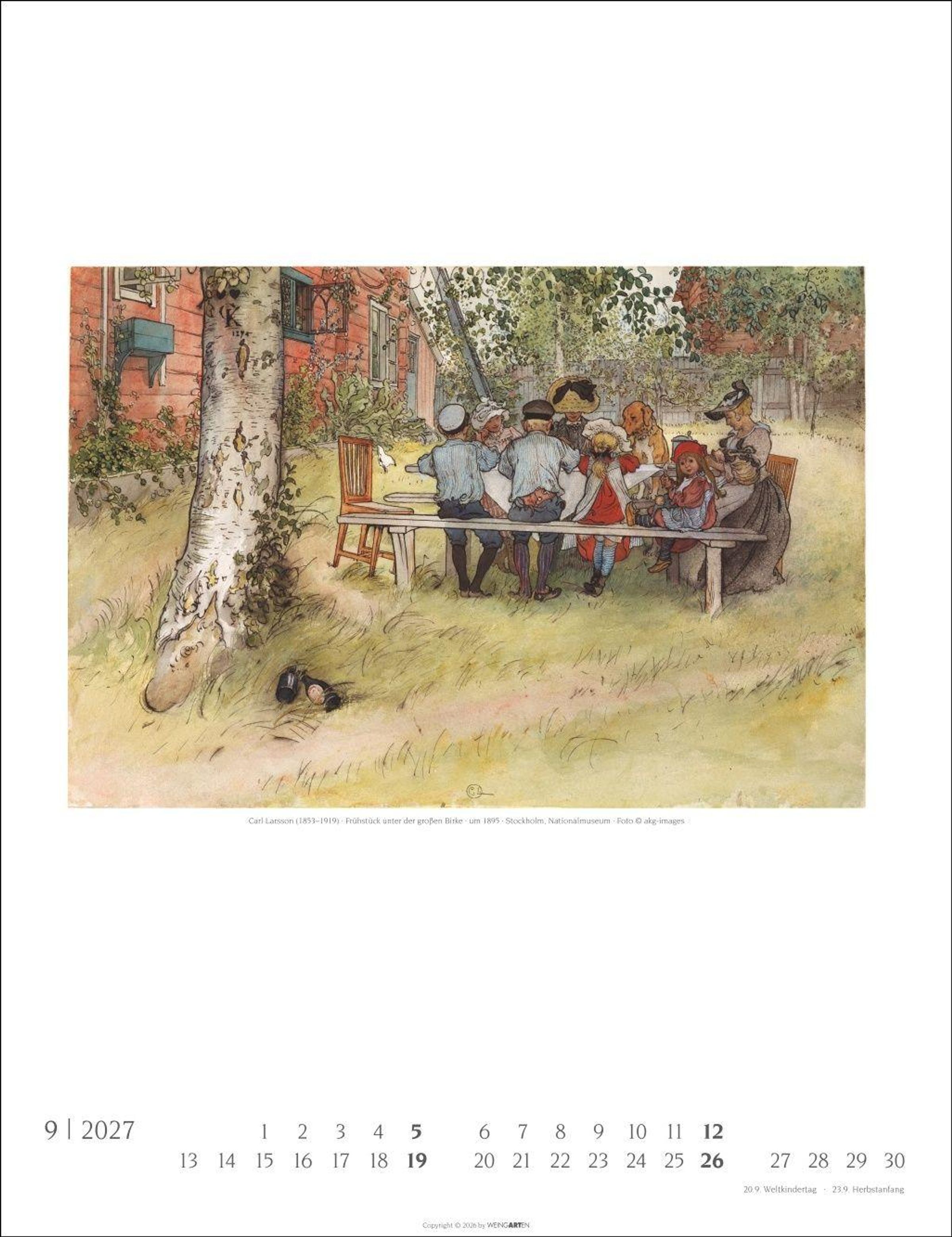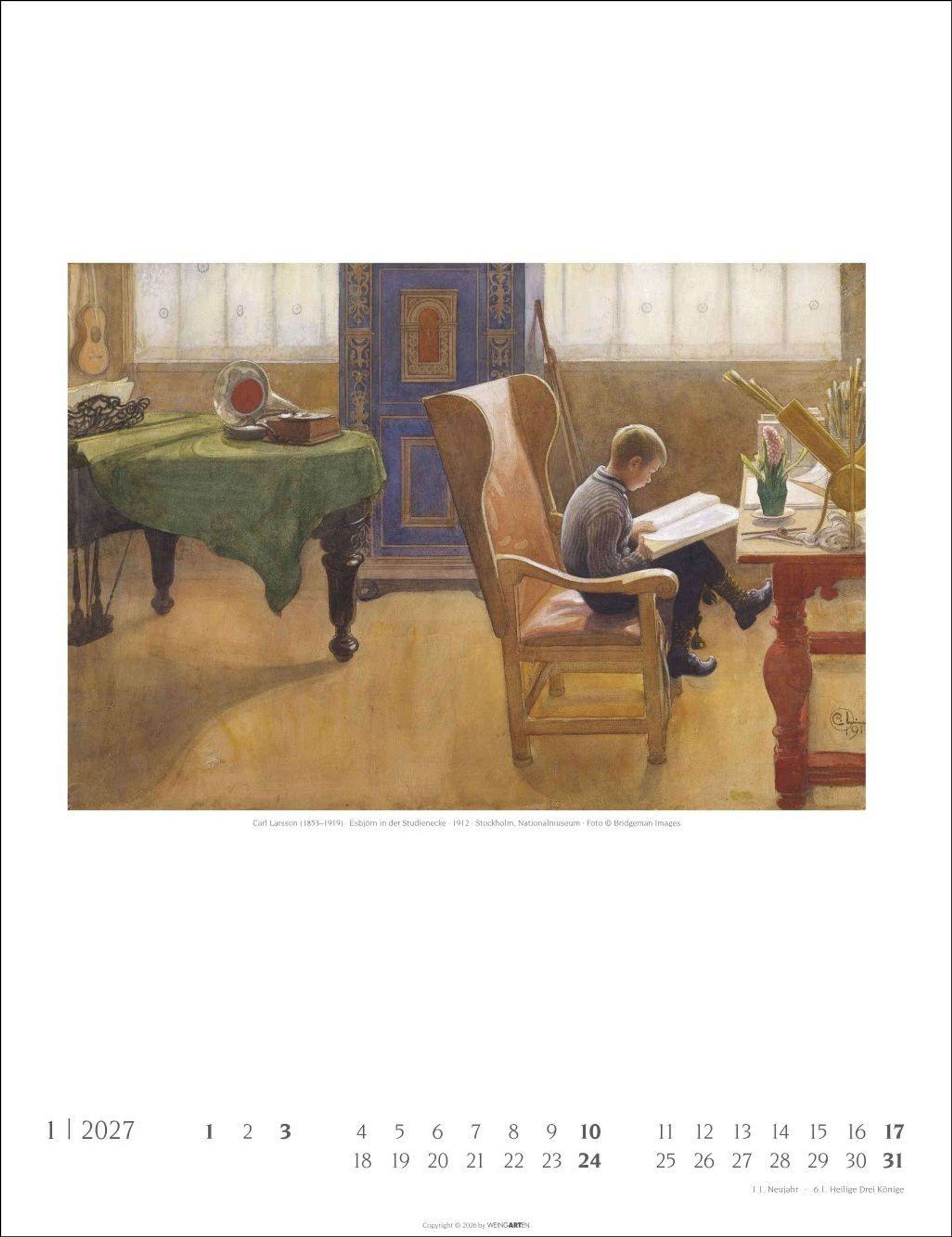 Monat für Monat ein Aquarell des berühmten schwedischen Künstlers bewundern in einem Carl-Larsson-Kalender 2027 im Format 30 x 39 cm