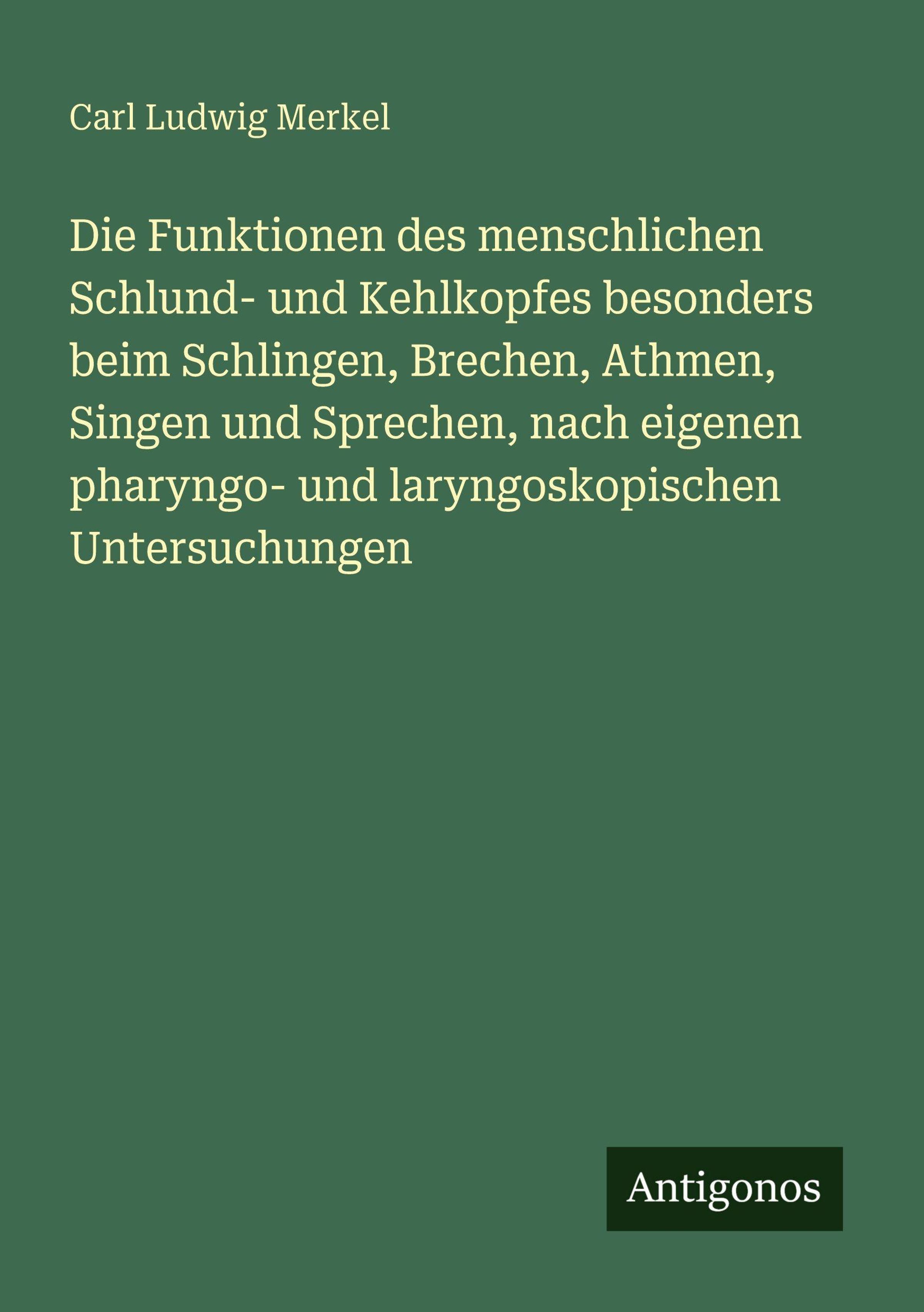 Die Funktionen des menschlichen Schlund- und Kehlkopfes besonders beim Schlingen, Brechen, Athmen, Singen und Sprechen, nach eigenen pharyngo- und laryngoskopischen Untersuchungen