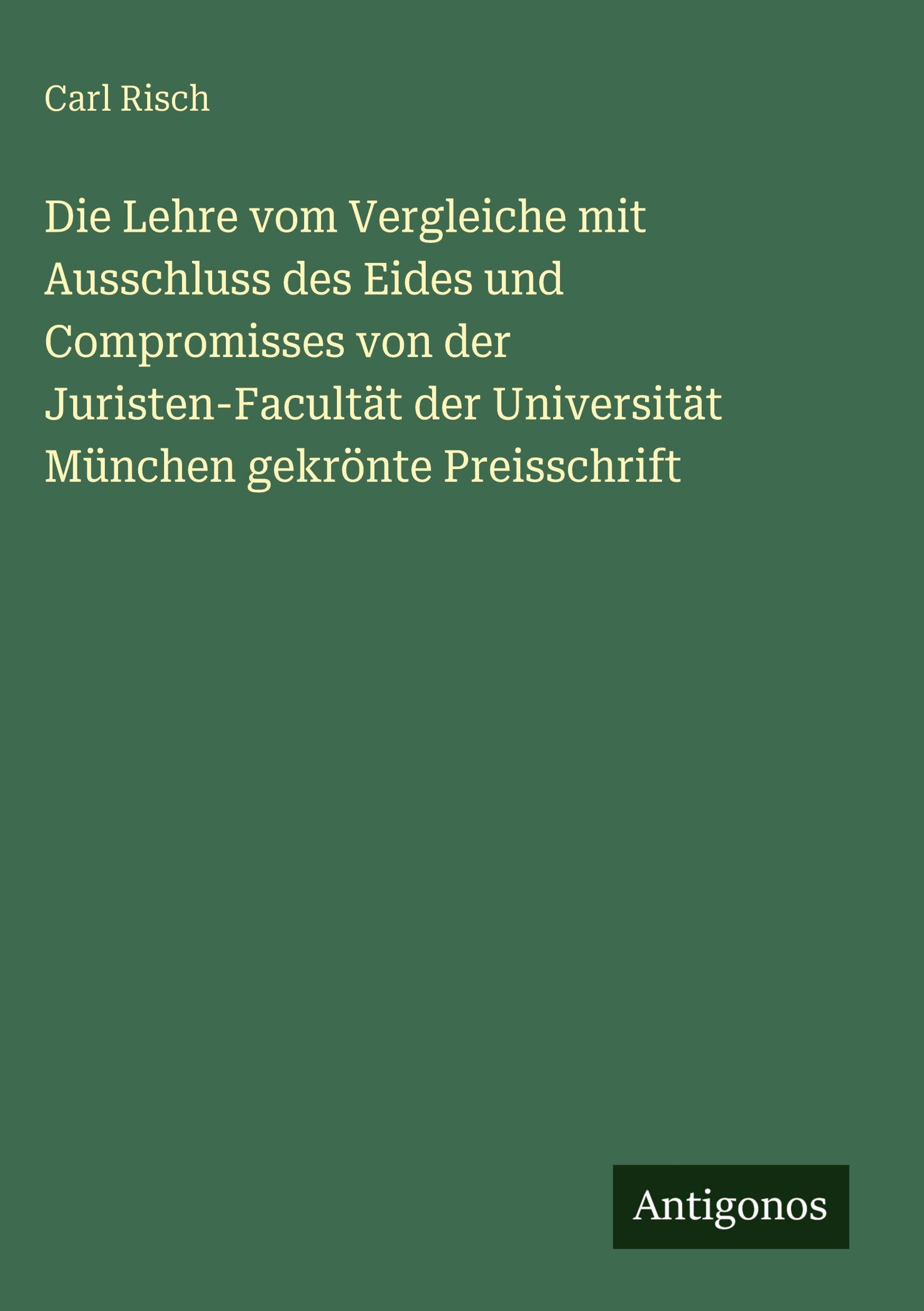 Carl Risch: Die Lehre vom Vergleiche mit Ausschluss des Eides und Compromisses von der Juristen-Facultät der..., Gebunden
