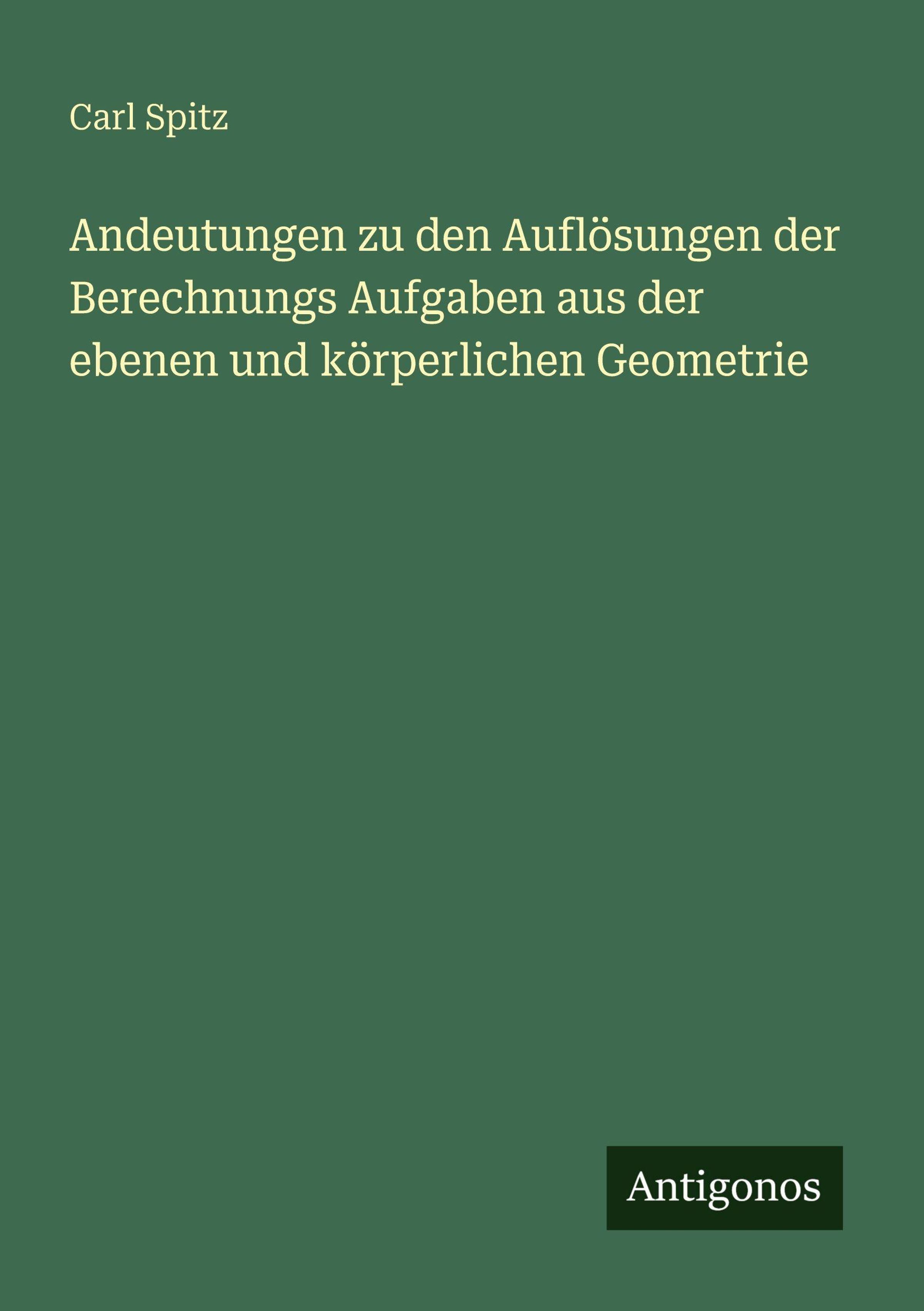 Carl Spitz: Andeutungen zu den Auflösungen der Berechnungs Aufgaben aus der ebenen und körperlichen Geometrie, Kartoniert / Broschiert