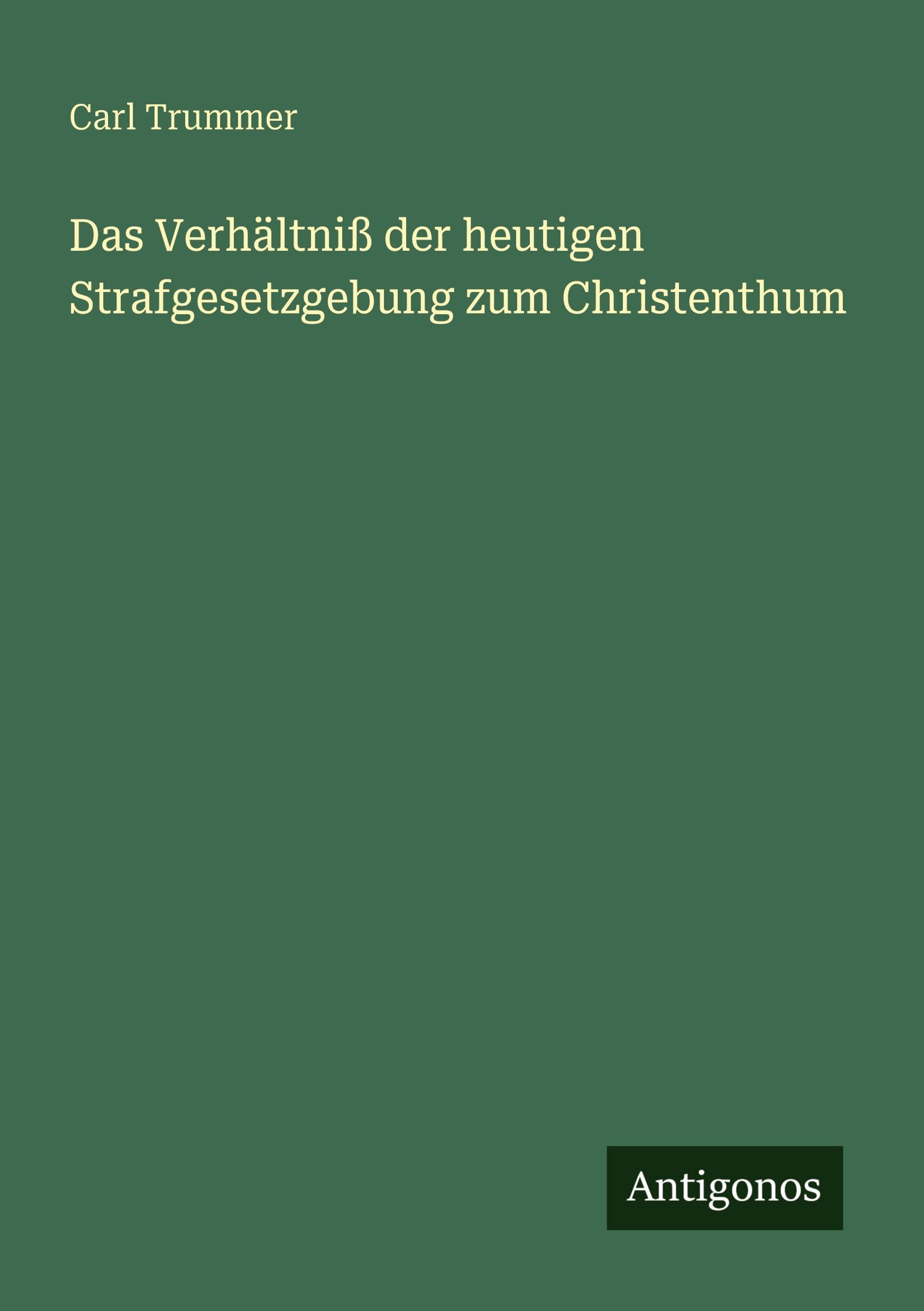 Carl Trummer: Das Verhältniß der heutigen Strafgesetzgebung zum Christenthum, Kartoniert / Broschiert