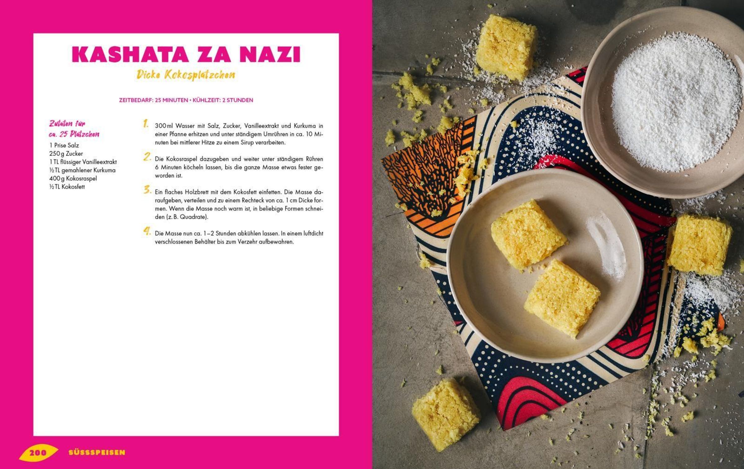 Traumhafte Desserts wie kenianisches Kokos-Kardamom-Gebäck, himmlische Cashewkern-Süßkartoffel-Creme oder süße schwarze Bohnen in Kokossoße