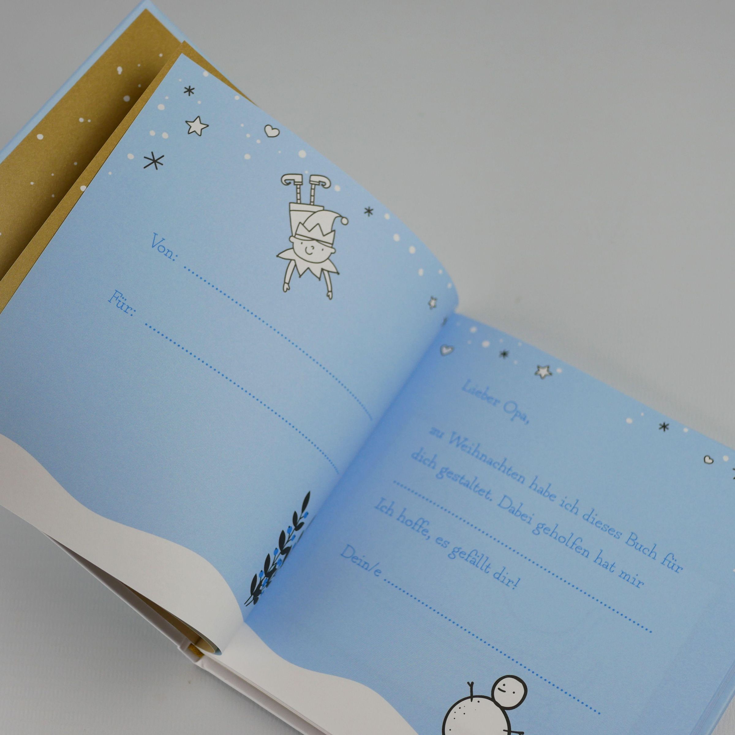 Welcher Opa freut sich nicht über ein einzigartiges, selbst gemachtes Geschenk zu Weihnachten? Mit diesem Ausfüllbuch entsteht für den Großvater ein einmaliges und ganz persönliches Geschenk, denn hier können Kinder durch Schreiben, Malen und Gestalten ihre Liebe und Zuneigung zu ihm verewigen. Der perfekte Weihnachtsgruß für einen ganz besonderen Menschen!