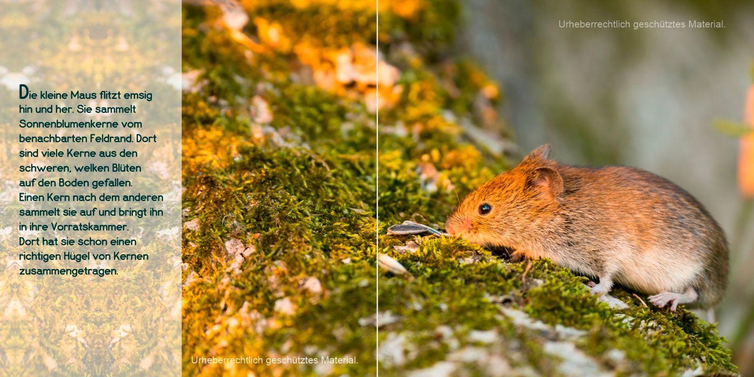 - Jede Doppelseite zeigt eine neue, bezaubernde Farbfotografie. Sie bringen den Leser*innen die kleine Bewohner unserer heimischen Natur ganz nah.