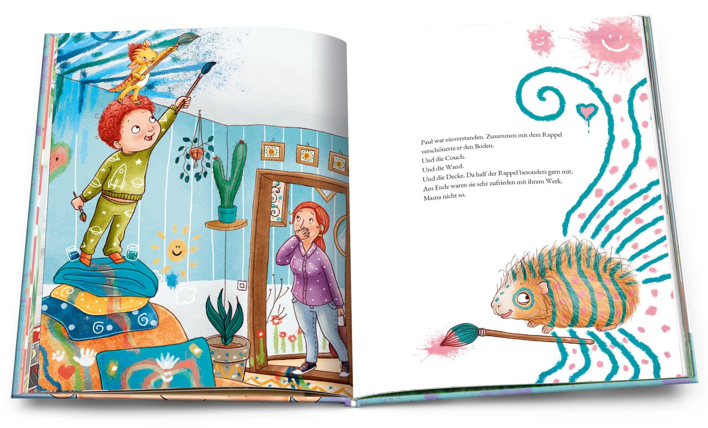 Eines Tages war er einfach da: der Rappel . An einem ganz normalen Morgen. Jedem hängt er sich an die Fersen. Erst den Kindern , dann Mama, Papa, Oma und Opa und bringt alle durcheinander. Er lässt sie hüpfen, räumen, scheppern, schmollen und laut sein.