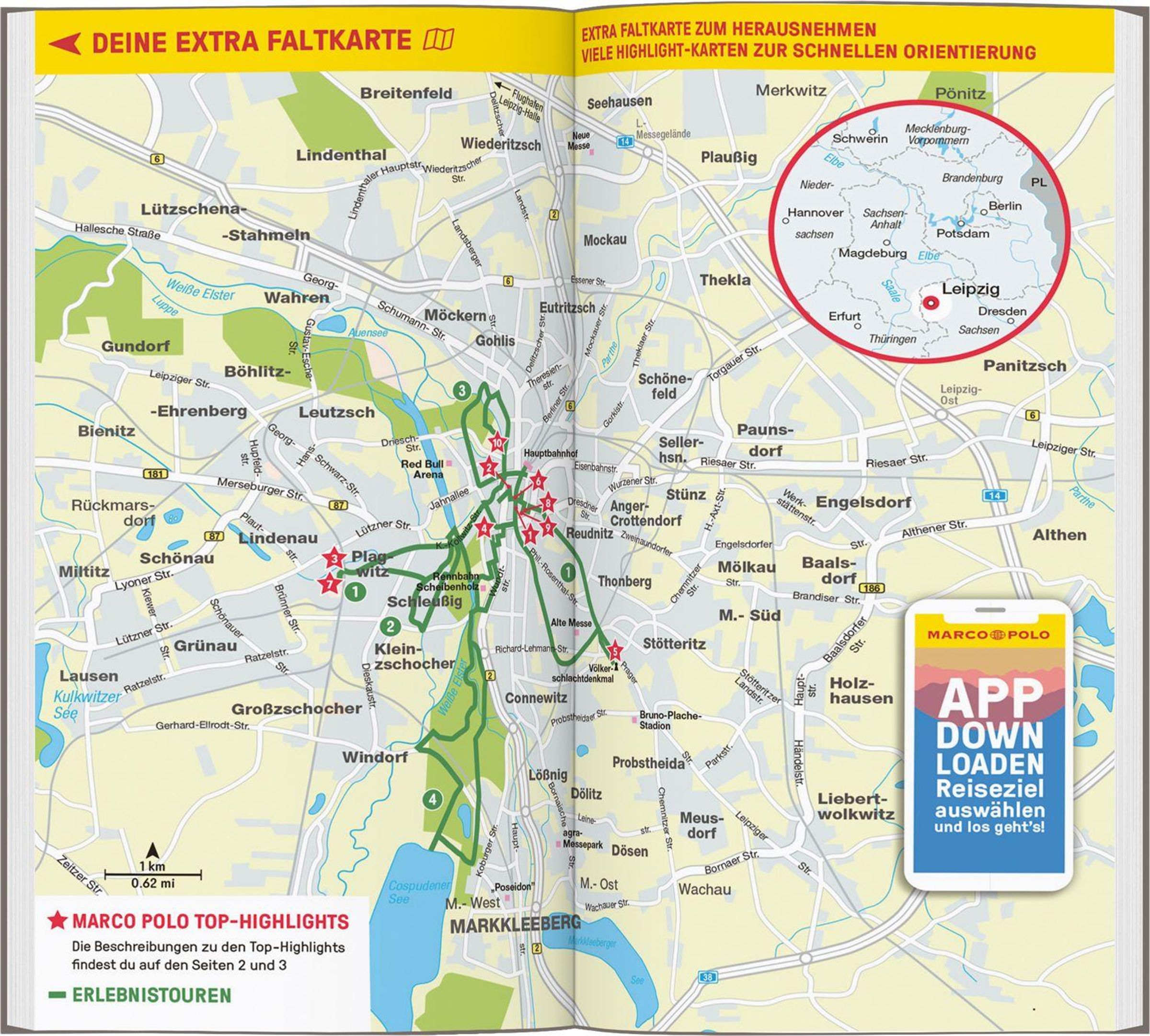 Erkundungstouren zu den spannendsten Stadtvierteln und Ausflugszielen - schnell und unkompliziert, inklusive Stadtplan zum Ausklappen