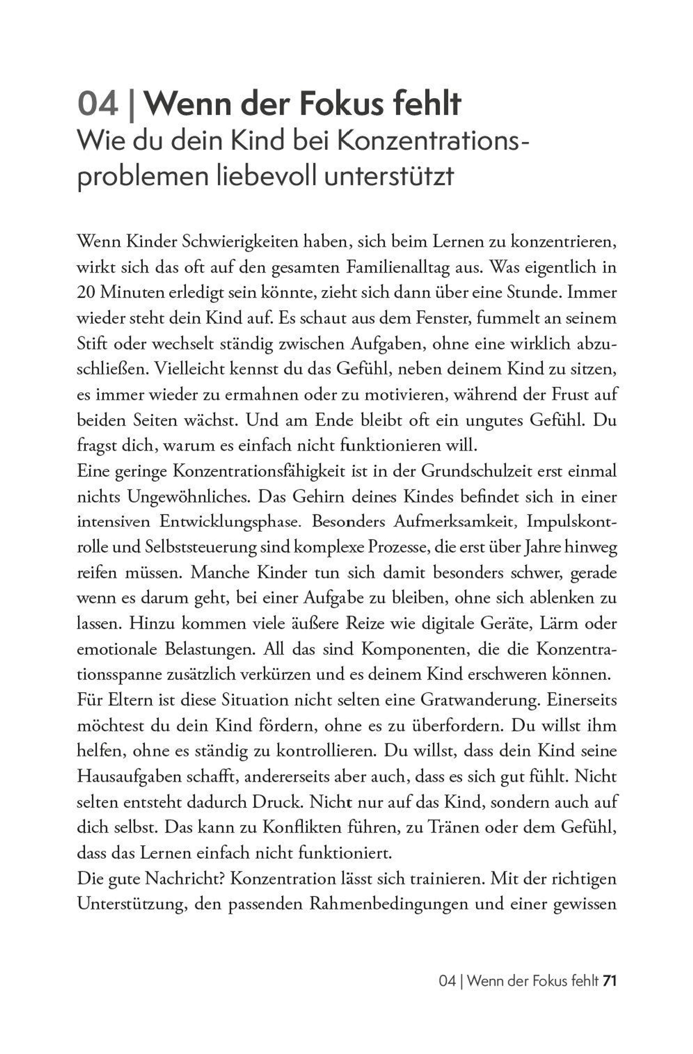 - Alltagstauglich: Die Tools lassen sich leicht in den Familienalltag integrieren. Anschauliche Beispiele und vereinfachte Situationen helfen dabei, sie zu verinnerlichen und erfolgreich umzusetzen.