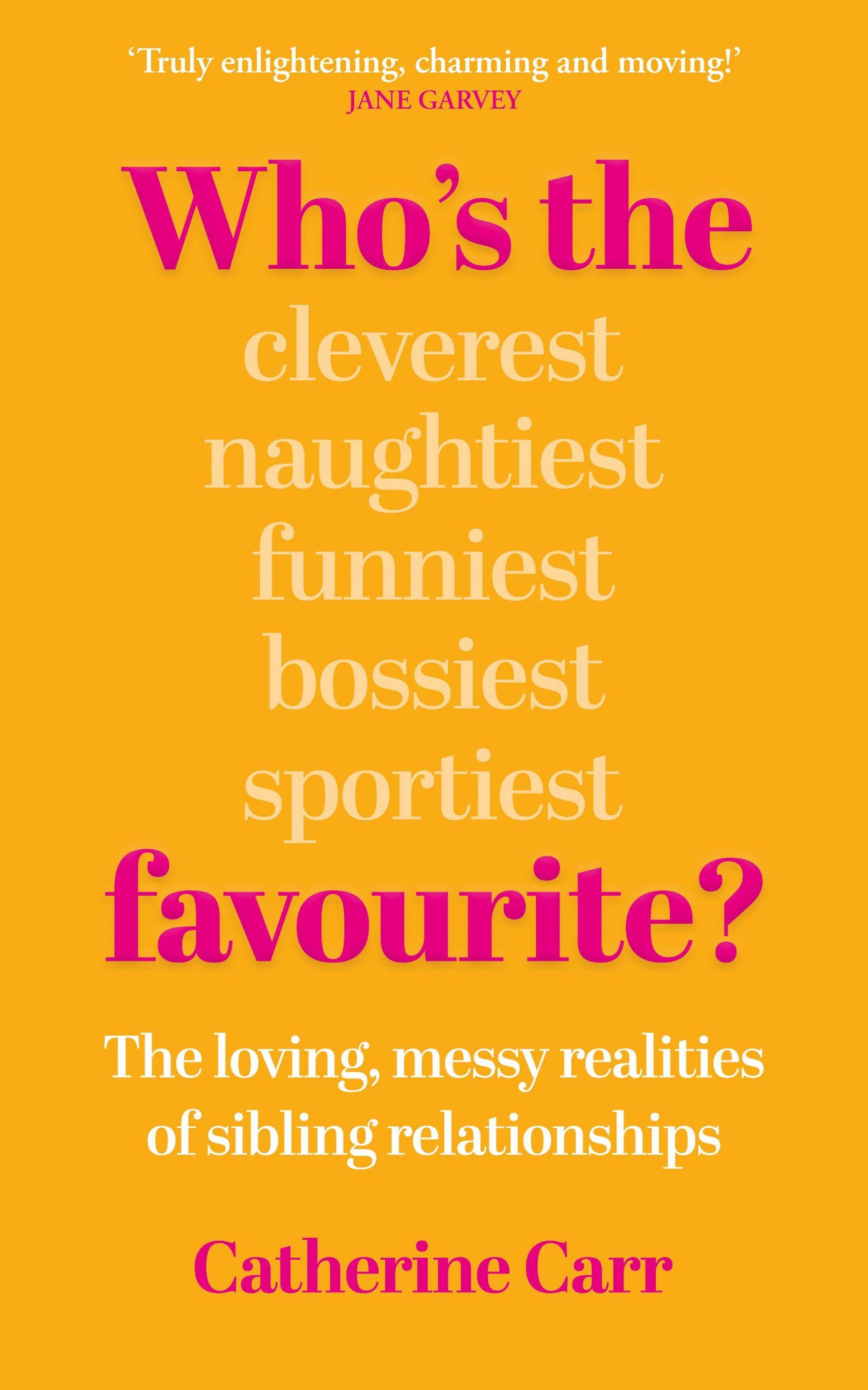 „Who’s the cleverest naughtiest funniest bossiest sportiest favourite?“ Gelber Hintergrund, Buchtitel von Catherine Carr., Buch