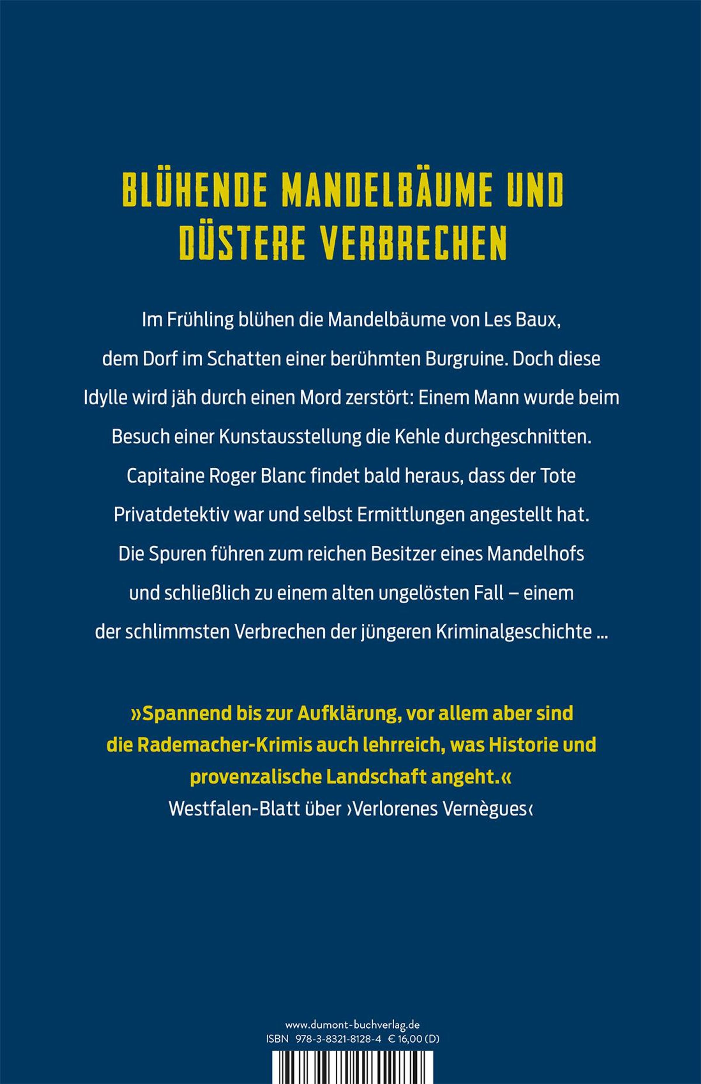 Februar in der Provence: Es wird langsam Frühling, die Mandelbäume blühen - und Capitaine Roger Blanc wird nach Les Baux gerufen. In einem düsteren Tal unterhalb der berühmten Burgruine liegen die Carrières de Lumières, ein aufgegebener Steinbruch, in dem nun Kunstausstellungen gezeigt werden. Während eines Besuchs wurde ein Mann ausgeraubt und brutal ermordet. Wie sich zeigt, war das Opfer, Patrick Ripert, Privatdetektiv. Der wohlhabende Besitzer eines Mandelhofs in der Nähe hatte ihn erst wenige Tage zuvor engagiert, weil ein Bild aus seiner umfangreichen Sammlung gestohlen worden war. Wie hängen die beiden Fälle miteinander zusammen? Blanc findet heraus, dass Ripert heimlich noch ganz andere Nachforschungen angestellt hat, und stößt auf ein grausames Verbrechen: Vor sieben Jahren wurde eine ganze Familie ausgelöscht, es war eines der blutigsten Dramen der französischen Kriminalgeschichte. Der Mörder ist damals in der Provence untergetaucht - und nie wieder hat jemand eine Spur von ihm gefunden. Bis jetzt. Als ein weiterer Mord geschieht, wird klar, dass Blanc dem Täter sehr nahe gekommen sein muss ...